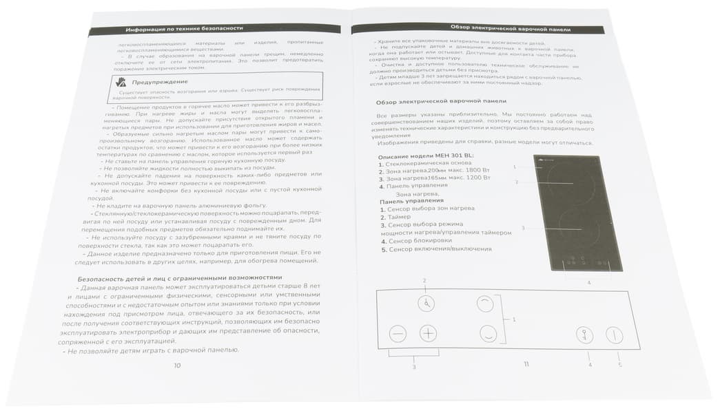 В документе представлена подробная информация о технике безопасности при взаимодействии с устройством, о правильной установке панели, обо всех нюансах управления, а также о правилах ухода за устройством. Руководство содержит информацию о двух похожих моделях, так что в некоторых местах придется быть внимательным и читать именно то, что относится к данной конкретной поверхности.