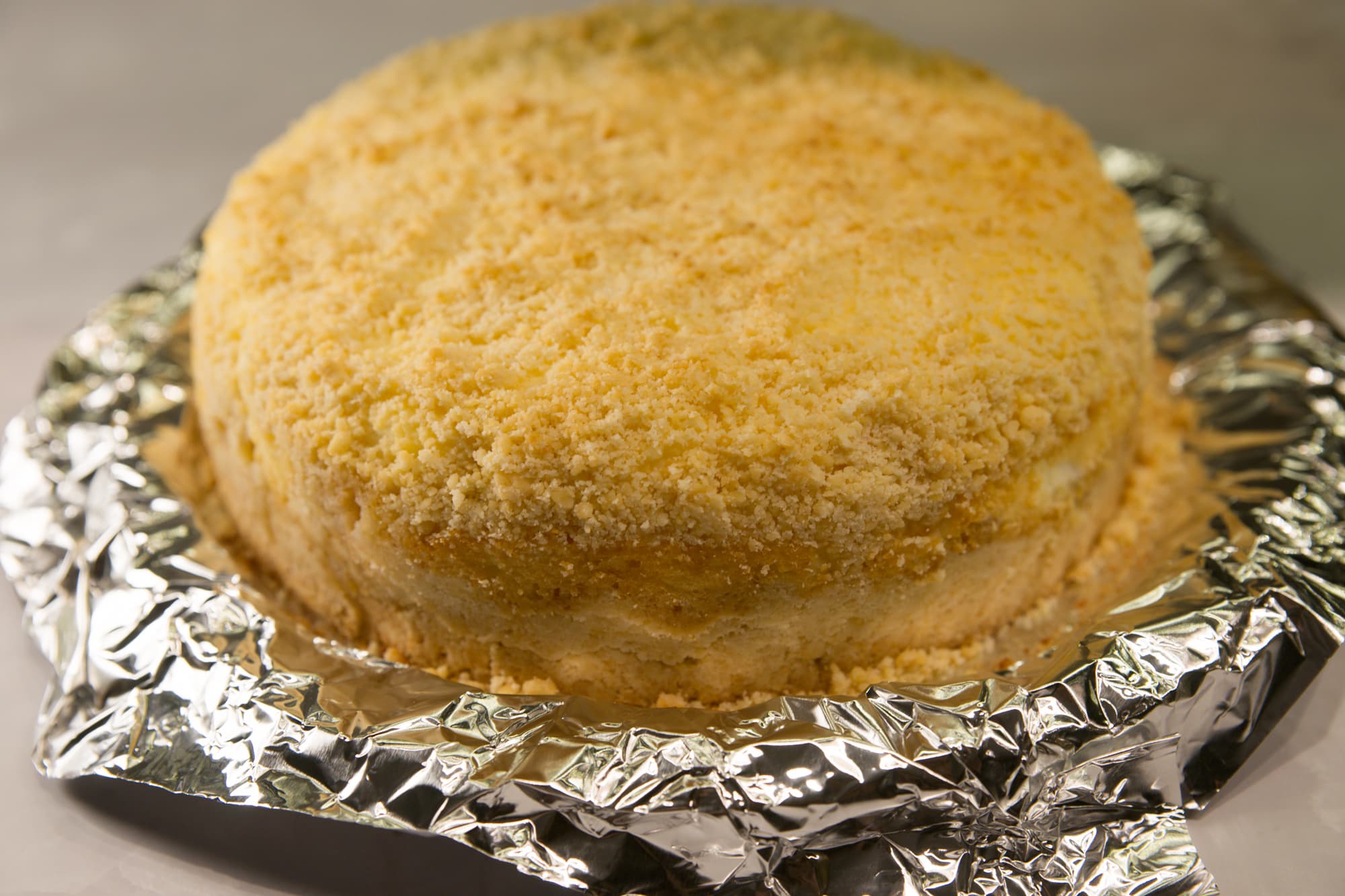В муку всыпали соль и разрыхлитель, добавили холодное сливочное масло, нарезанное кубиками, и перетерли в крошку. Смешали желтки с сахаром, влили в тесто и тщательно всё еще раз перемешали. Суть в том, чтобы получить крошку, которая легко сминается пальцами. В емкость диаметром 20 см выложили ⅔ теста, сформировав дно и небольшие бортики. После чего убрали заготовку и остатки теста в холодильник примерно на 20 минут.