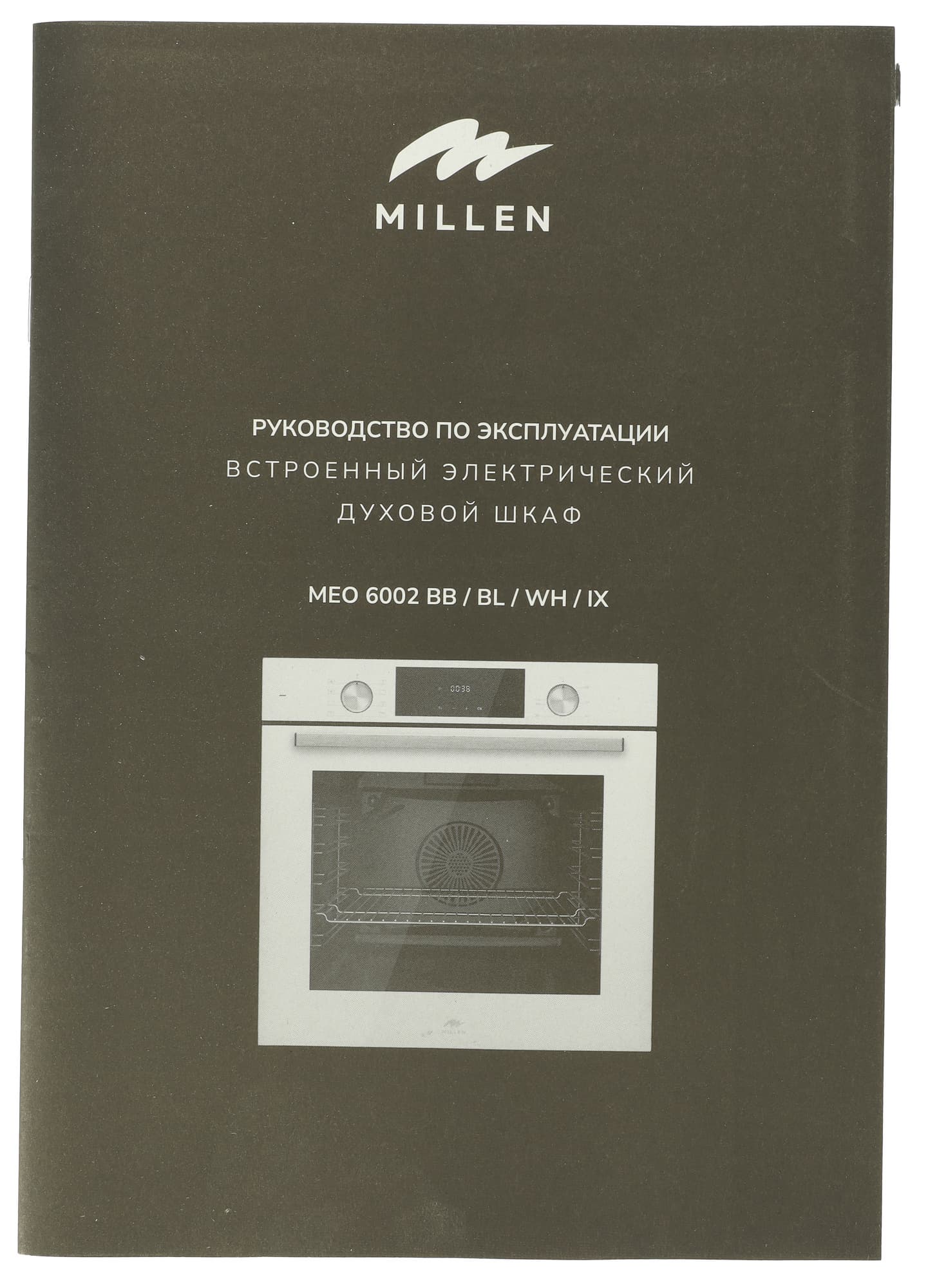 Инструкция для Millen MEO 6002 BB представлена в виде 47-страничной брошюры формата А5. Документ последовательно знакомит пользователя с устройством духового шкафа, его установкой, освещает все нюансы эксплуатации и управления, а также содержит подробное описание режимов работы и советы по уходу. Последние страницы отведены под информацию о гарантии.