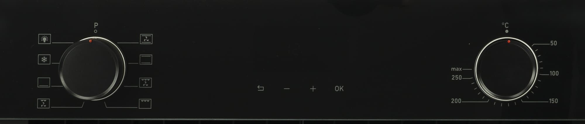 Управление духовкой удобно и понятно без долгого штудирования инструкции. В распоряжении пользователя комбинация из дисплея с сенсорными кнопками и пары механических утапливаемых регуляторов, при помощи которых выбирается один из 8 режимов работы и устанавливается температура с шагом в 10 градусов. Набор режимов стандартный, достаточный для любых кулинарных задач на домашней кухне. Объем внутренней камеры позволяет готовить большие порции или несколько блюд одновременно.