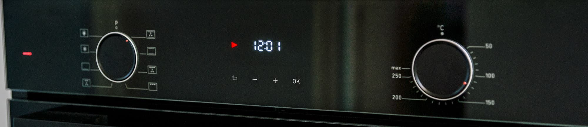 С их помощью можно настроить часы (без этого шага духовка не включится), установить будильник без привязки к работе прибора, задать длительность приготовления, отложить старт, настроить окончание приготовления к заданному времени и заблокировать панель.