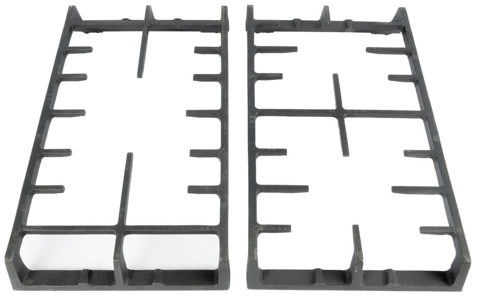 Увесистые чугунные решетки не смещаются при касании, так как встают в специальные углубления в поверхности панели. На дне решеток есть маленькие резиновые ножки.