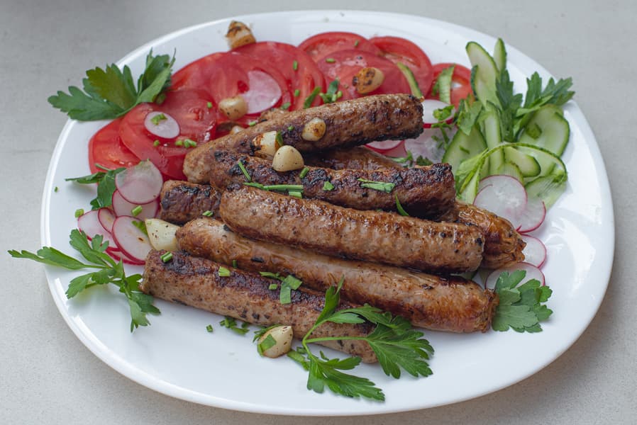 Среднюю конфорку мы так и не смогли отрегулировать на минимальную температуру, поэтому наши сосиски и кабачки немного пережарились. Оценим результат как хороший.