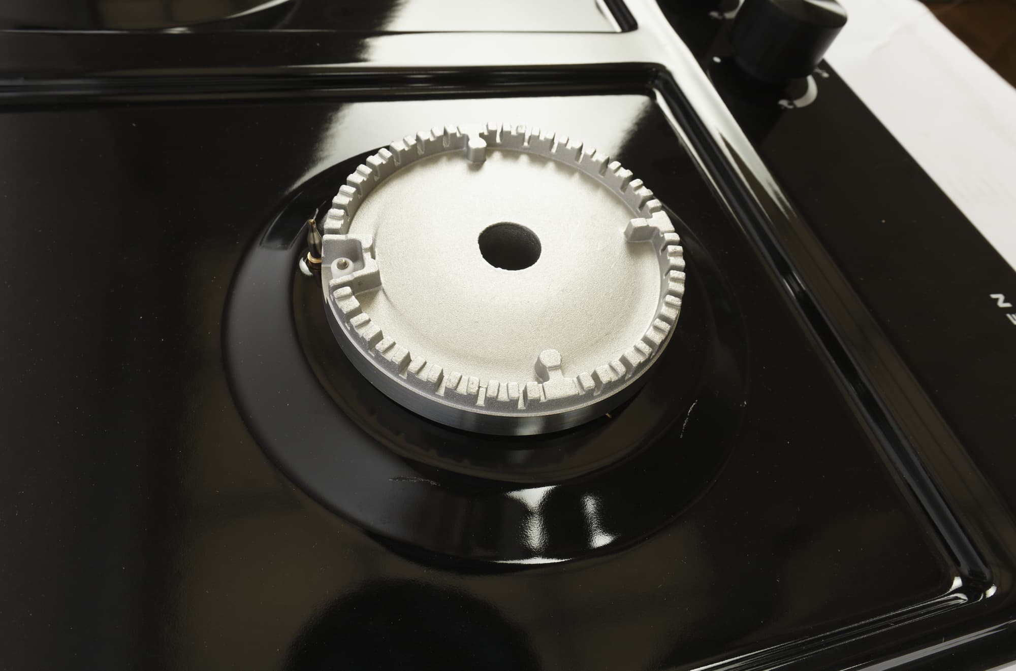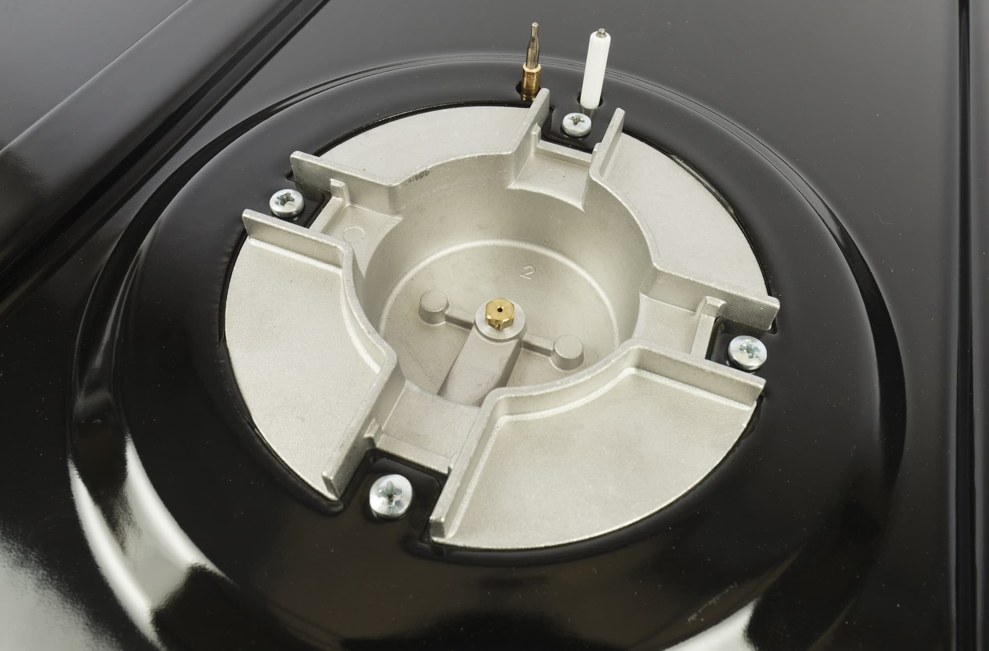 Большая (Wok) конфорка имеет мощность 3300 Вт и состоит из большого рассекателя и двух отдельных крышек.