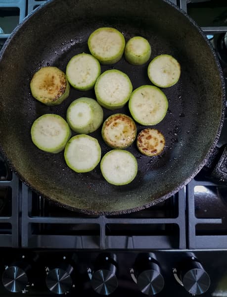 С кабачками произошла примерно такая же ситуация, но мощности вок и даже большой конфорки оказалось слишком много.