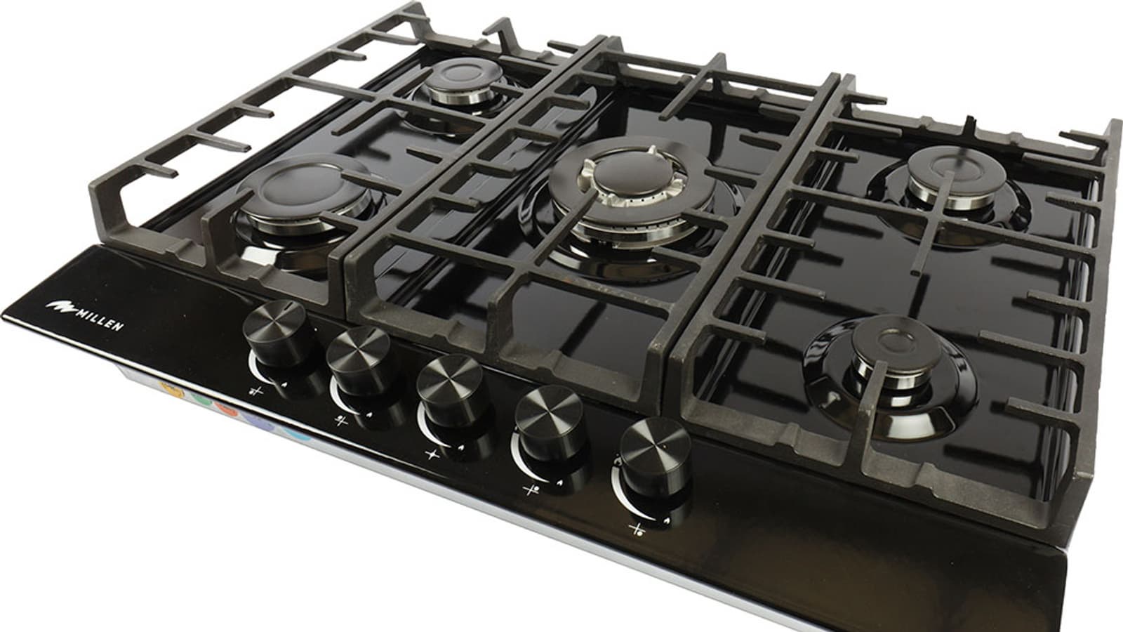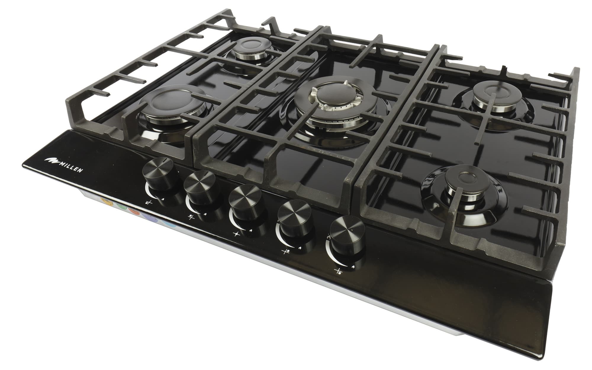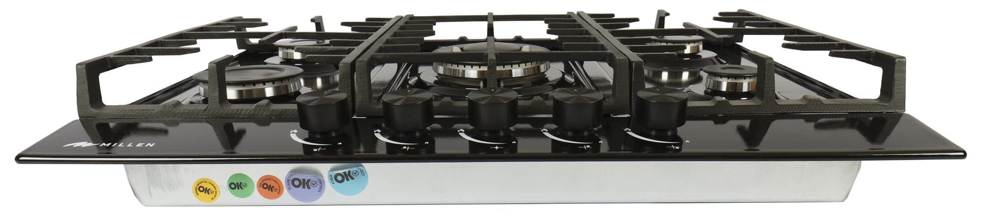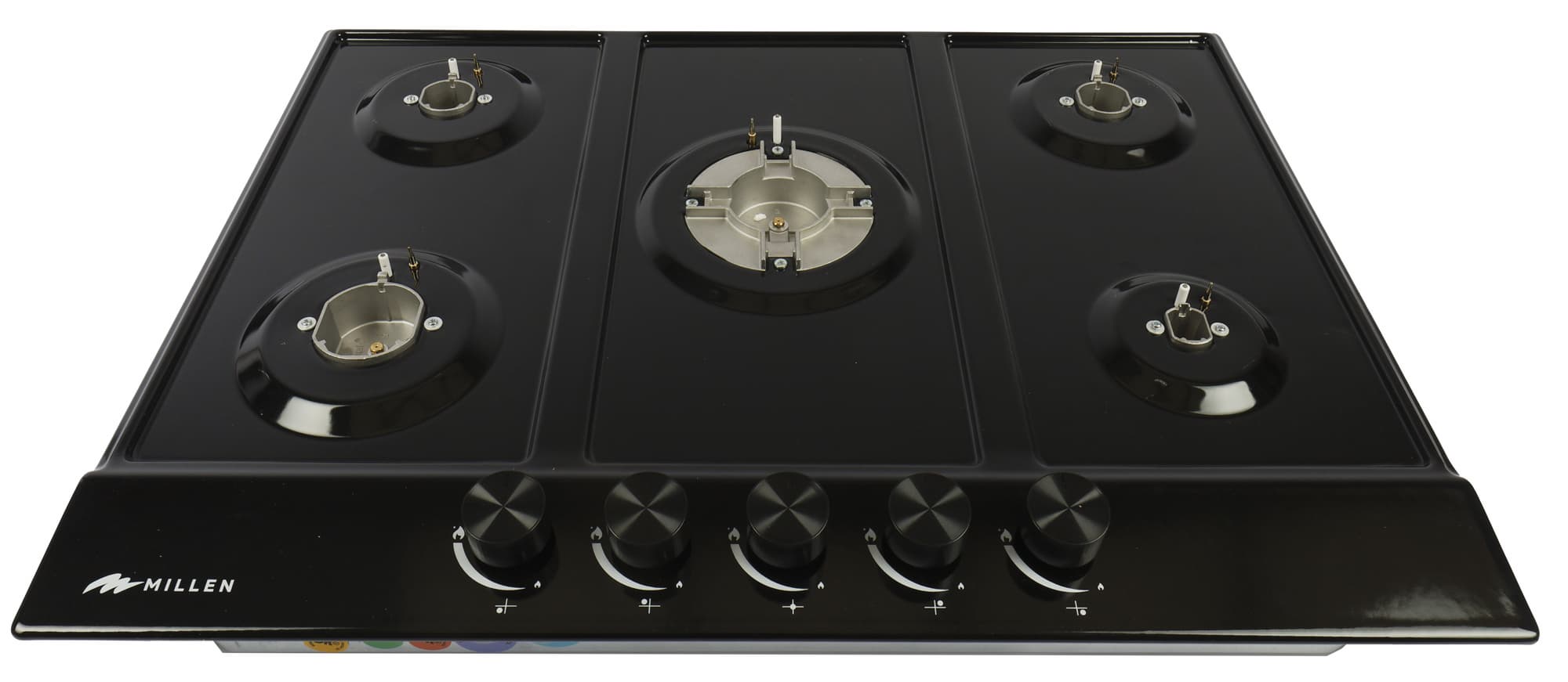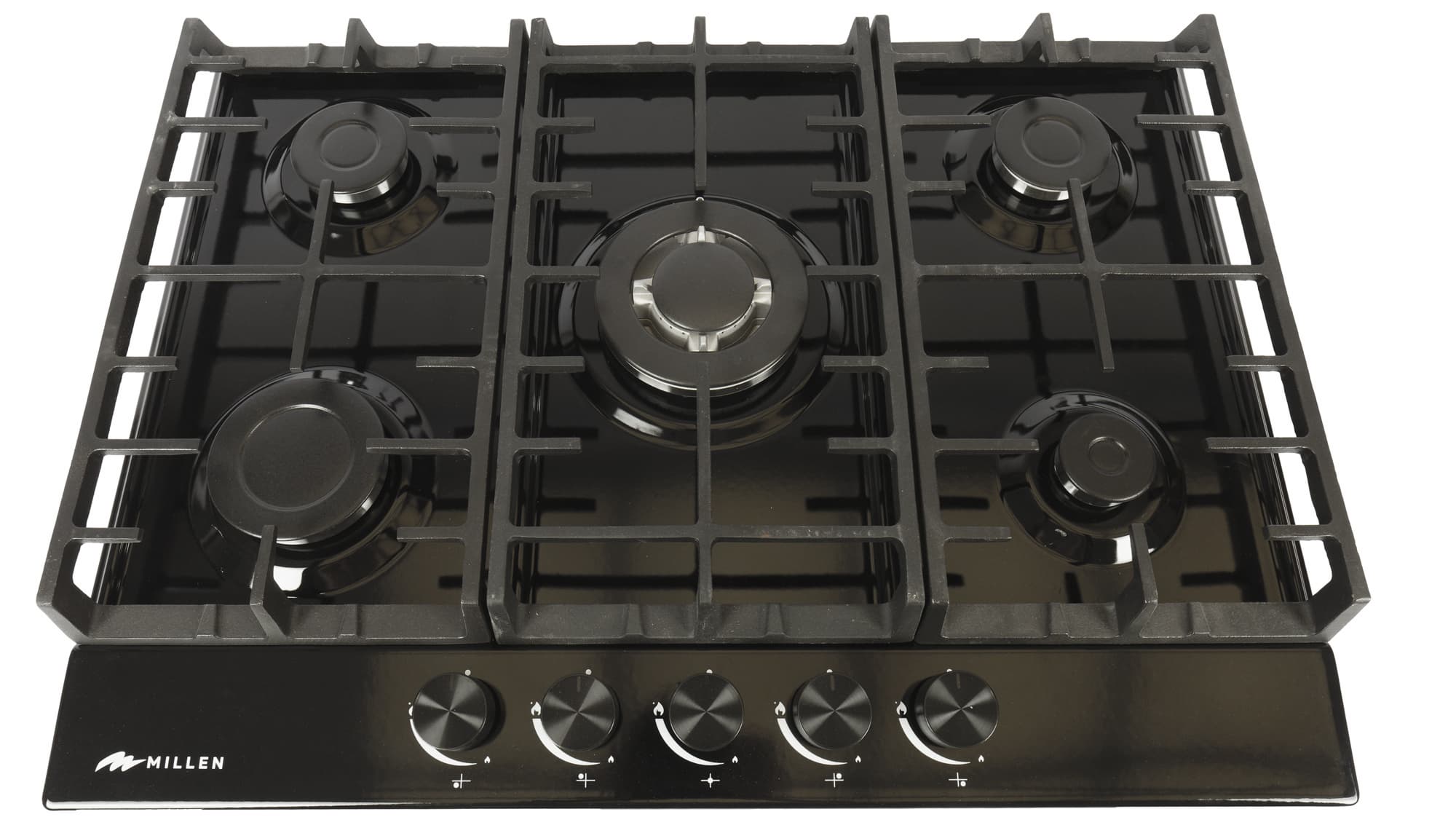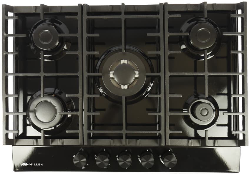 Газовая варочная поверхность Millen MGH 701 BL — прибор с пятью мощными конфорками и увеличенной длиной рабочей поверхности по сравнению со стандартной плитой. Конфорки рассчитаны на приготовление в посуде среднего и большого объема. Три чугунные решетки удобны в уходе и эксплуатации. Газ-контроль и электроподжиг срабатывает быстро и четко на всех конфорках.