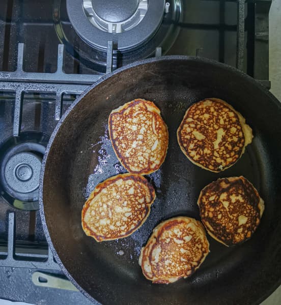 Мы смогли добиться, чтобы внутри сырник пропекся, а снаружи еще не подгорел, но пришлось убавить газ почти до минимума.