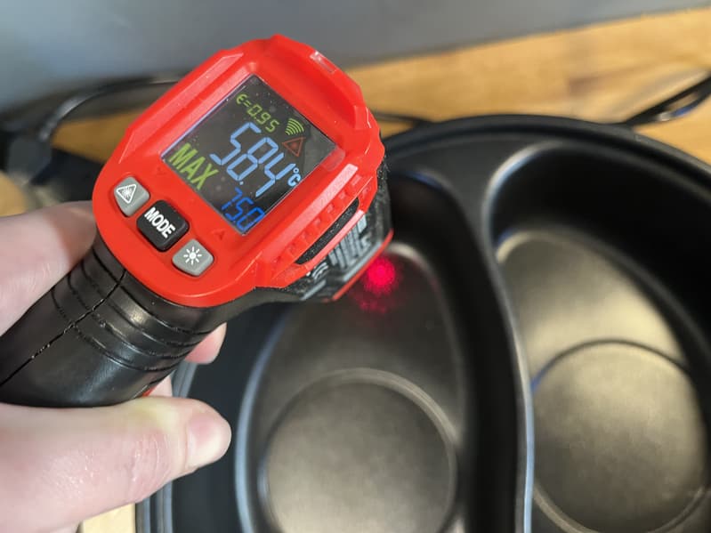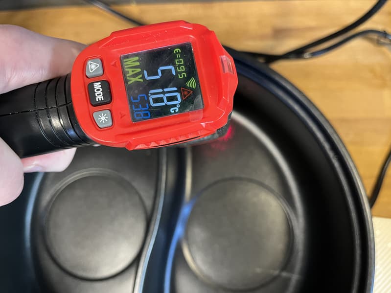 С помощью инфракрасного термометра мы также измерили температуру в обоих отсеках и выяснили, что левая чаша в центральной части нагревается примерно на 50 °C сильнее.