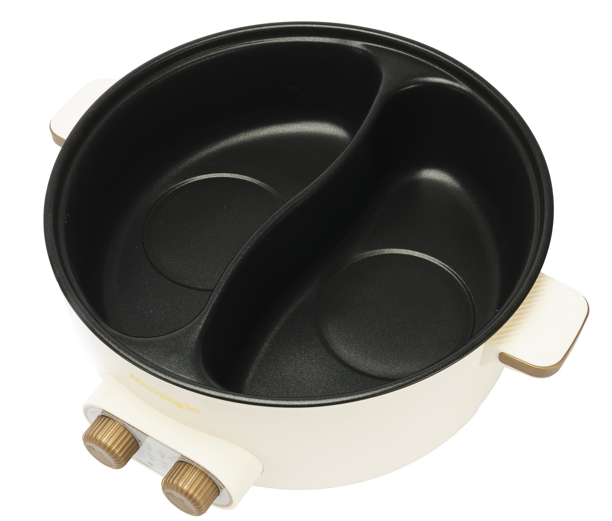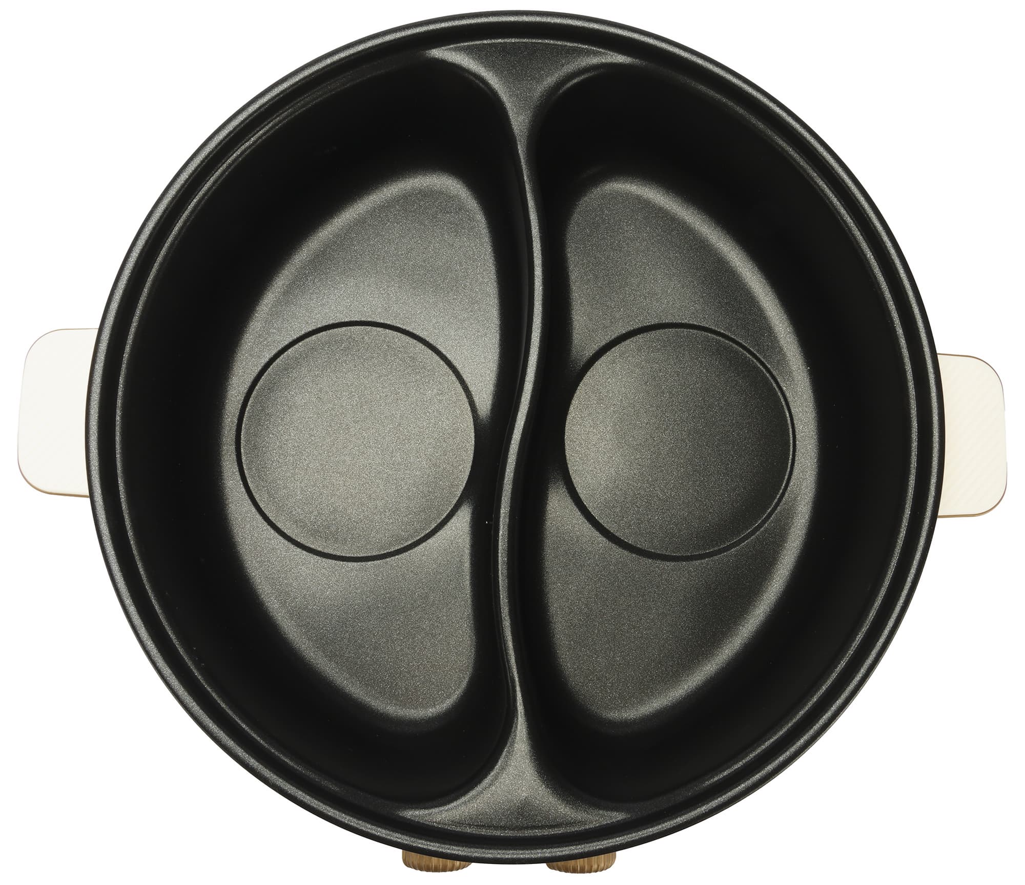 Чаша сделана из алюминия с антипригарным покрытием. Глубина отсеков составляет 10 см, а объем каждой половинки — 2,5 л. Внутри отсеков находятся небольшие углубления в форме круга, под которыми расположены тэны.