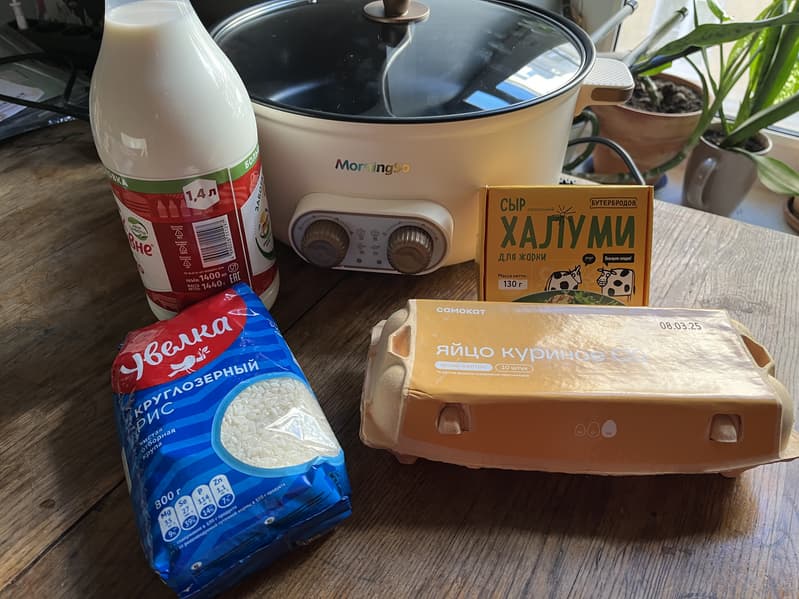 Для начала взялись за приготовление простой рисовой каши на молоке.