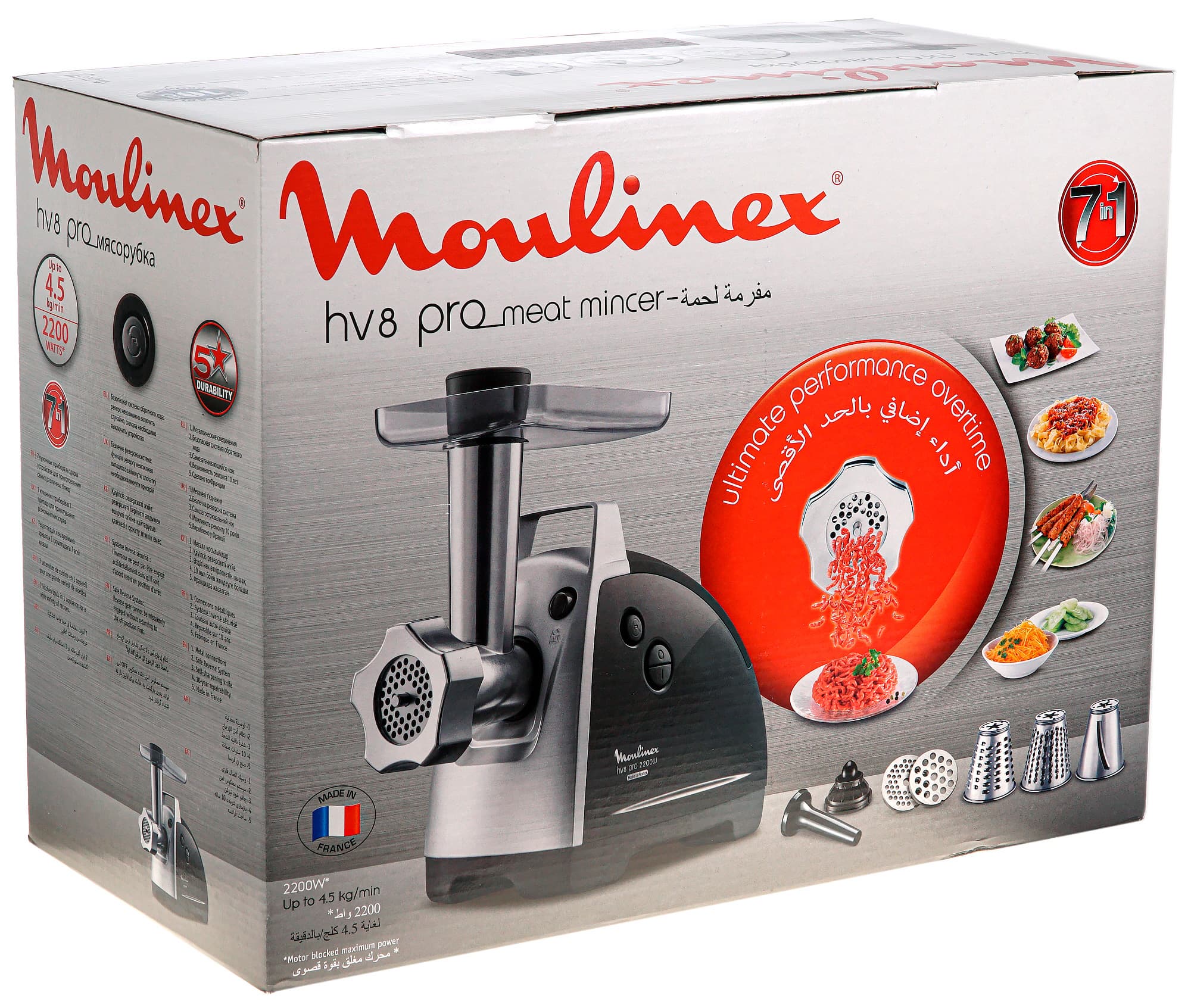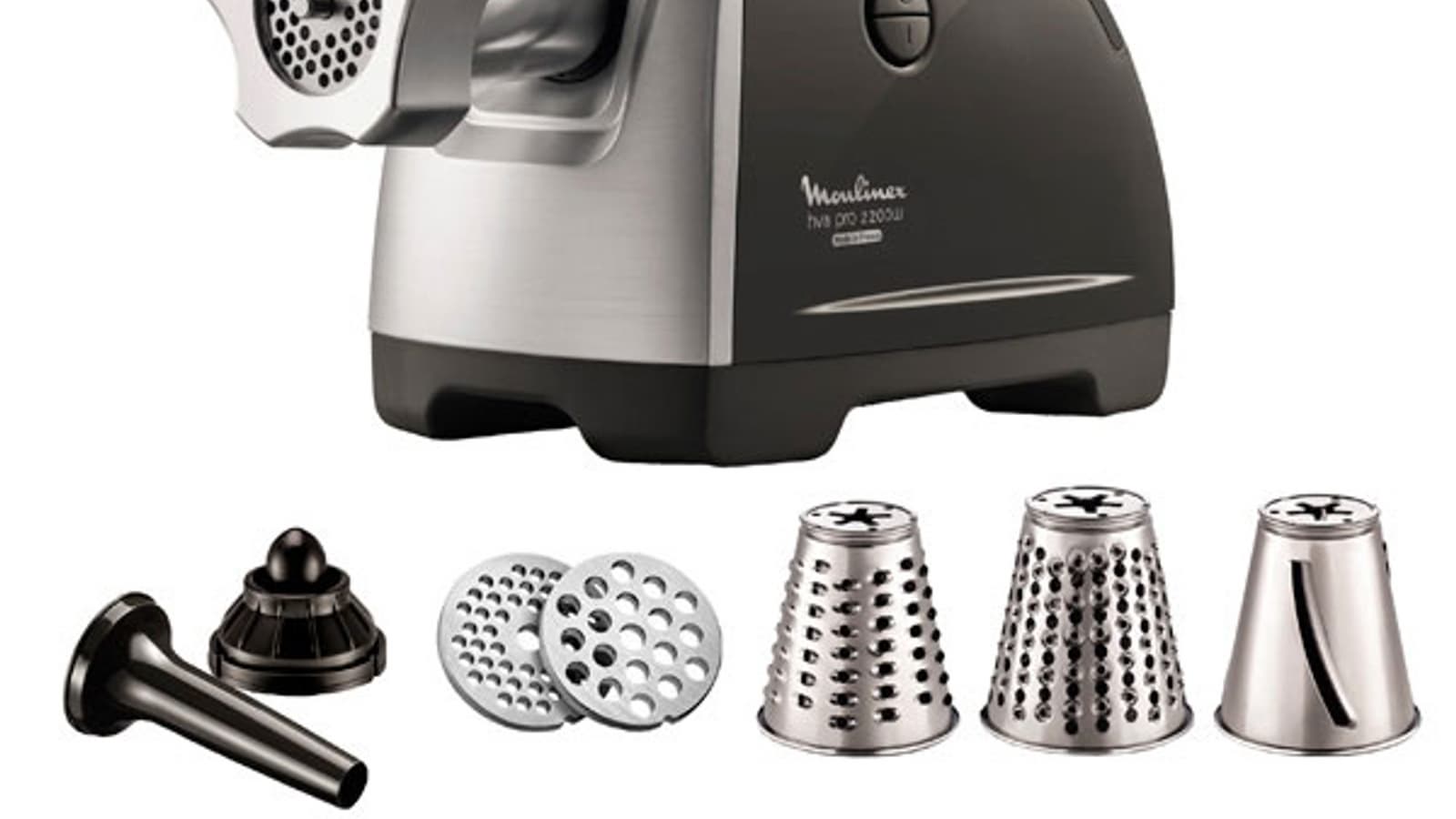 Мясорубка Moulinex HV8 Pro ME687832 относится к категории многофункциональных устройств. Помимо стандартных насадок для изготовления колбасок и кеббе (ну покажите же нам, наконец, хоть одного пользователя, который их делает!), она оснащена овощерезкой с тремя конусами. Высокая мощность, необычная форма насадки-мясорубки, отсек для хранения аксессуаров — нам не терпится поскорее перейти к эксплуатации прибора, чтобы оценить производительность и удобство использования.