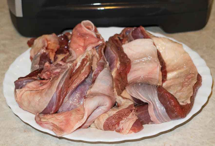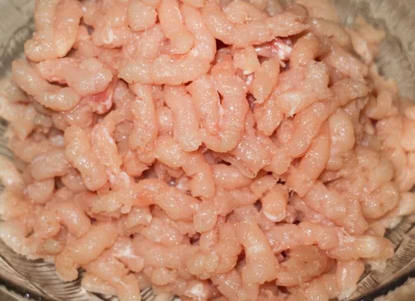 Филе индейки весом 730 г перерабатывали через решетку с крупными отверстиями.