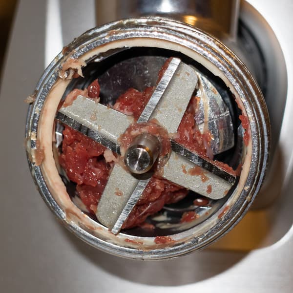 Лезвия ножа, как и вал шнека, абсолютно чистые. Непереработанного мяса внутри корпуса почти не осталось.