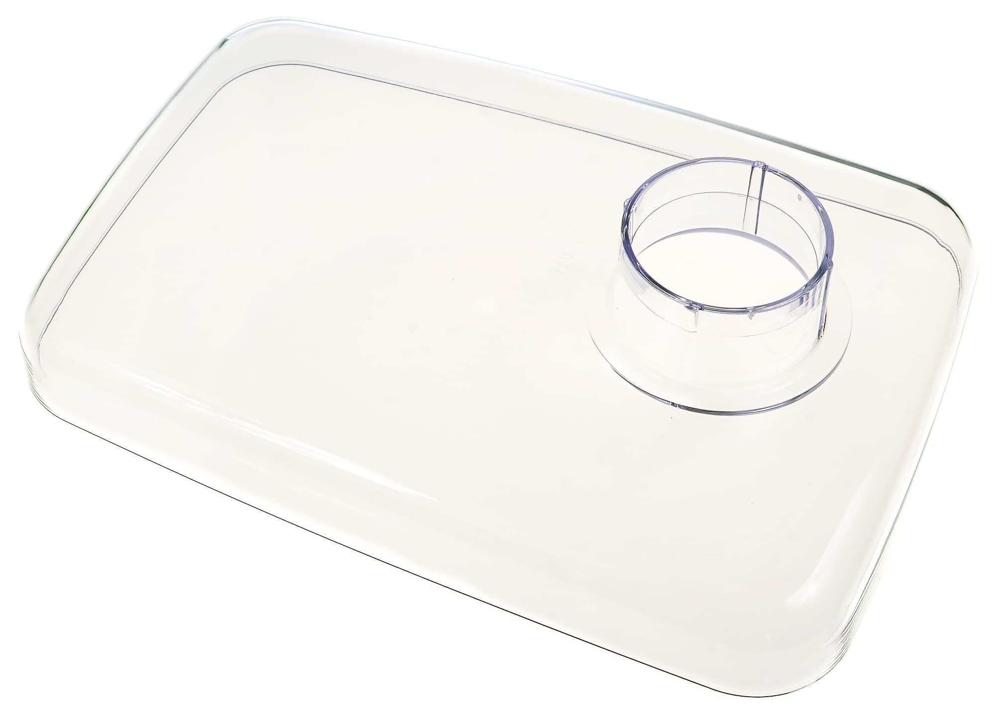 Загрузочный лоток, также как и толкатель, пластиковый. Форма стандартная. Горловина лотка оснащена четырьмя уплотнителями, благодаря чему деталь крепко и без свободного вращения фиксируется на мясорубке.