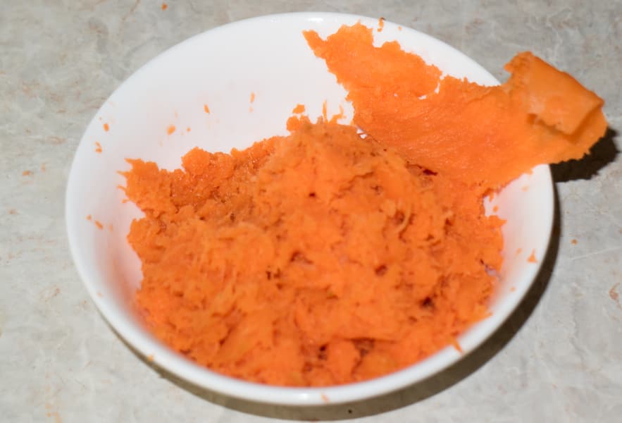 Далее мы приступили к тестированию насадки-овощерезки. Начали с наименее востребованной насадки — в инструкции она названа конусом для скобления. Что ж мы будем скоблить? Легче всего — морковь. По крайней мере, понятно, куда использовать результат.