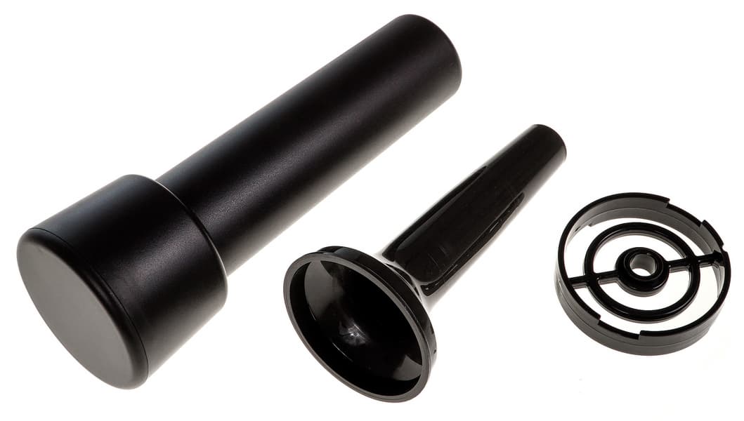 В состав насадки для изготовления кеббе входят наконечник и формующее кольцо. Все аксессуары сделаны из качественного пластика черного цвета.