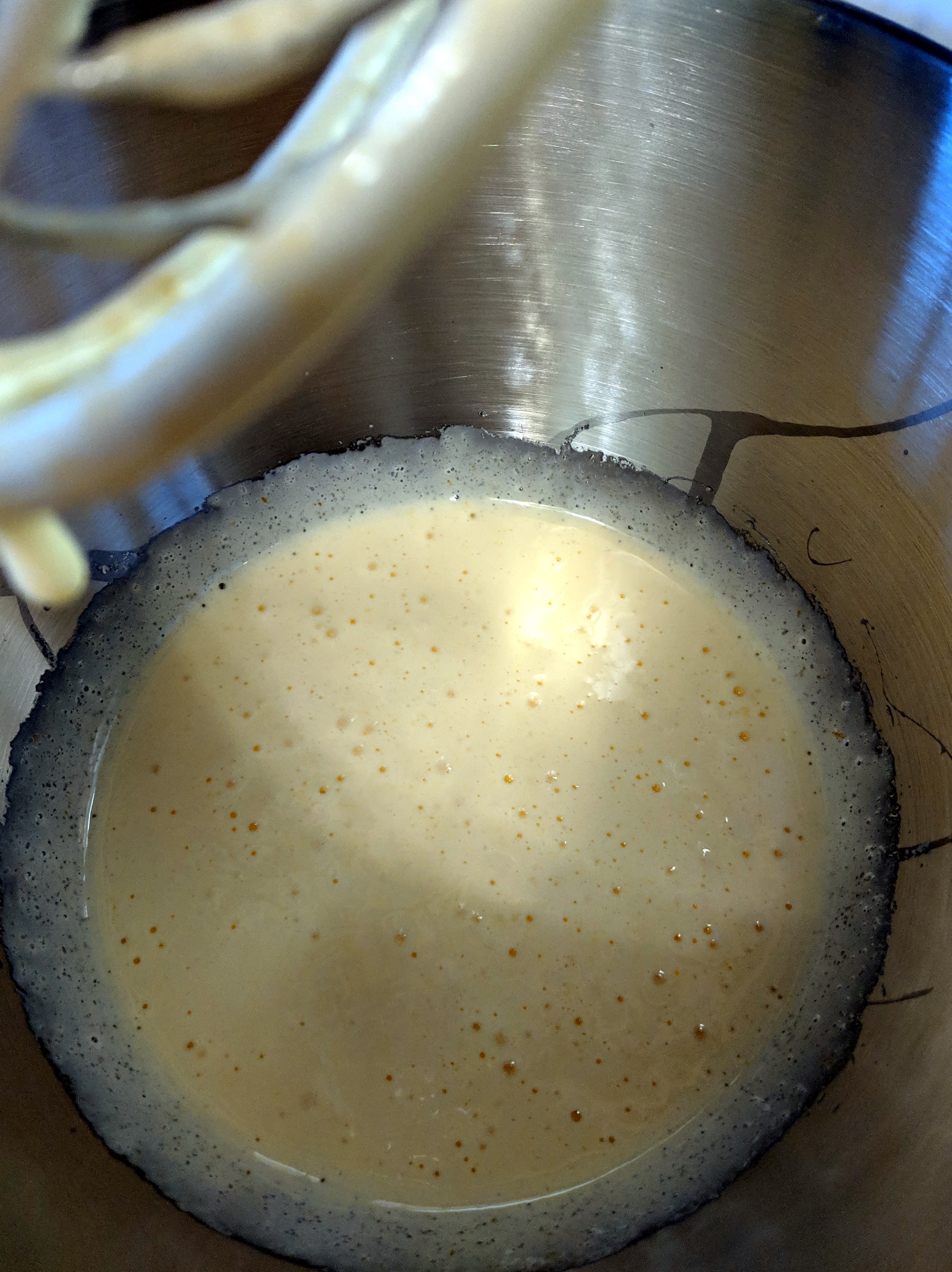 На это количество жидкости у нас ушло три стакана муки, и со второго мы поменяли насадку на крюк. Тесто замесилось быстро, на все ушло не больше семи минут. Ушло бы меньше, но мы останавливались поменять насадки и попробовать, как бы еще подсыпать.