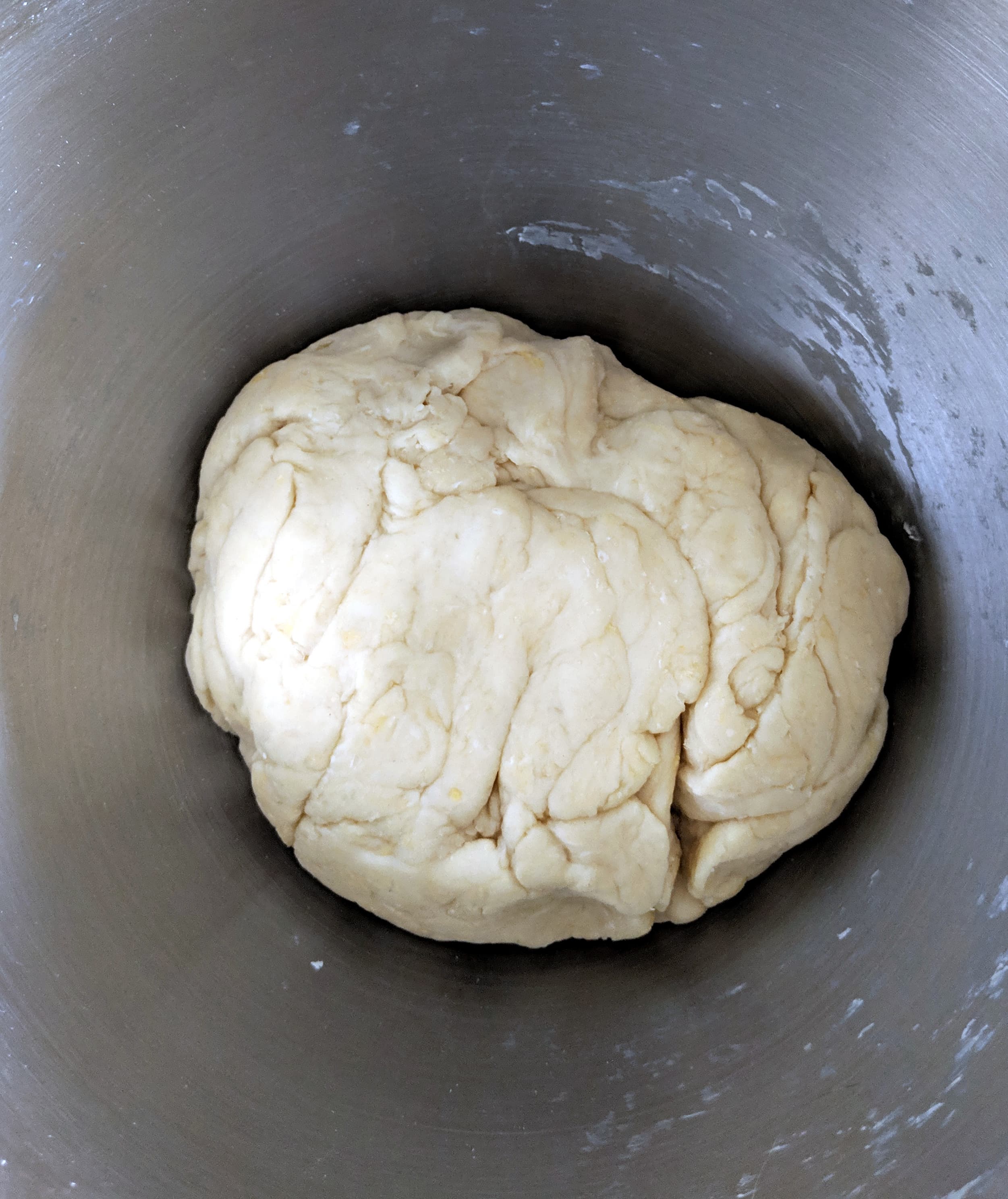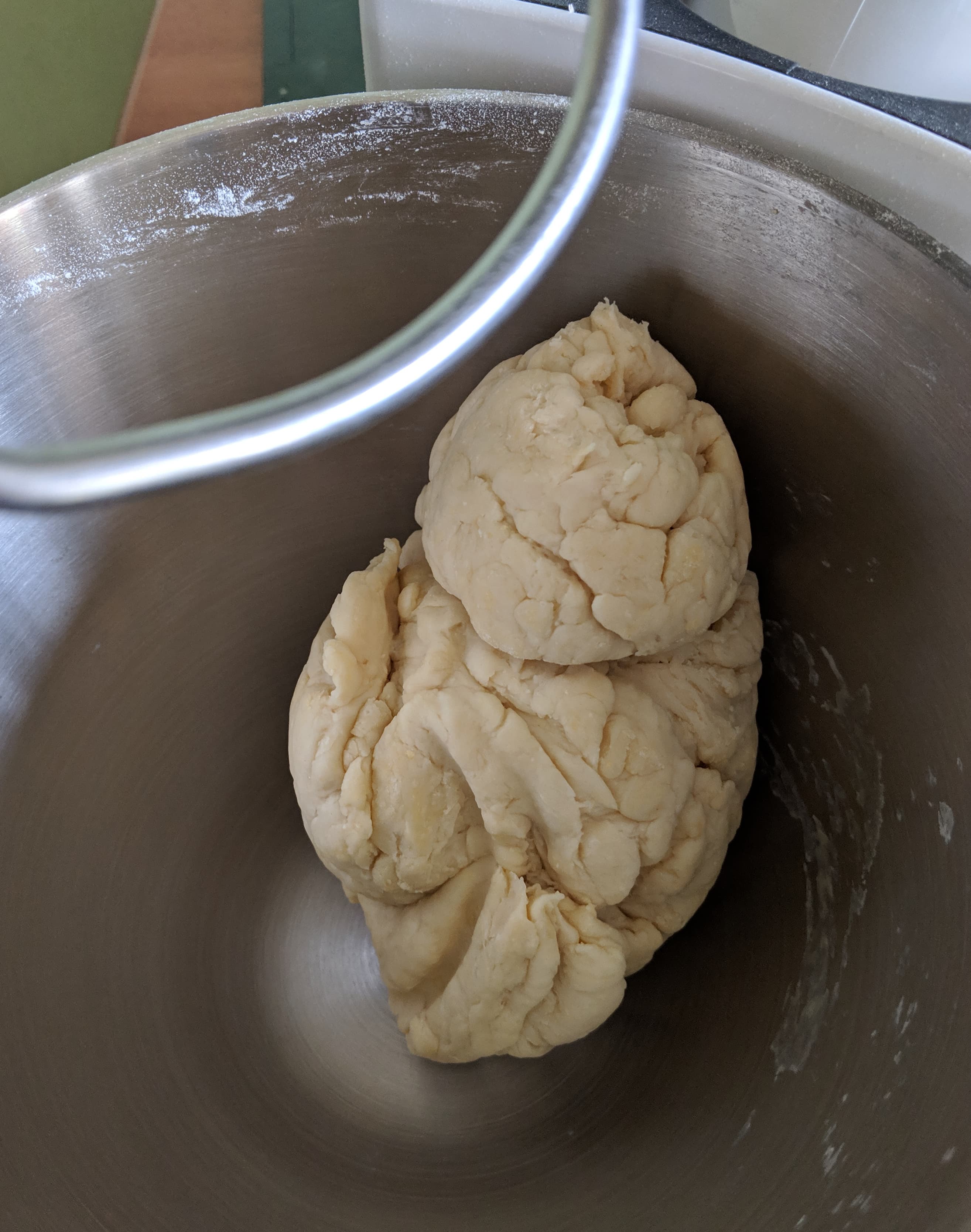 Тесто замесилось просто прекрасно — и всего за три с половиной минуты. Сначала мы беспокоились, так как количество крошки на дне миски все не уменьшалось, но затем тесто стало однородным, гладким и эластичным.