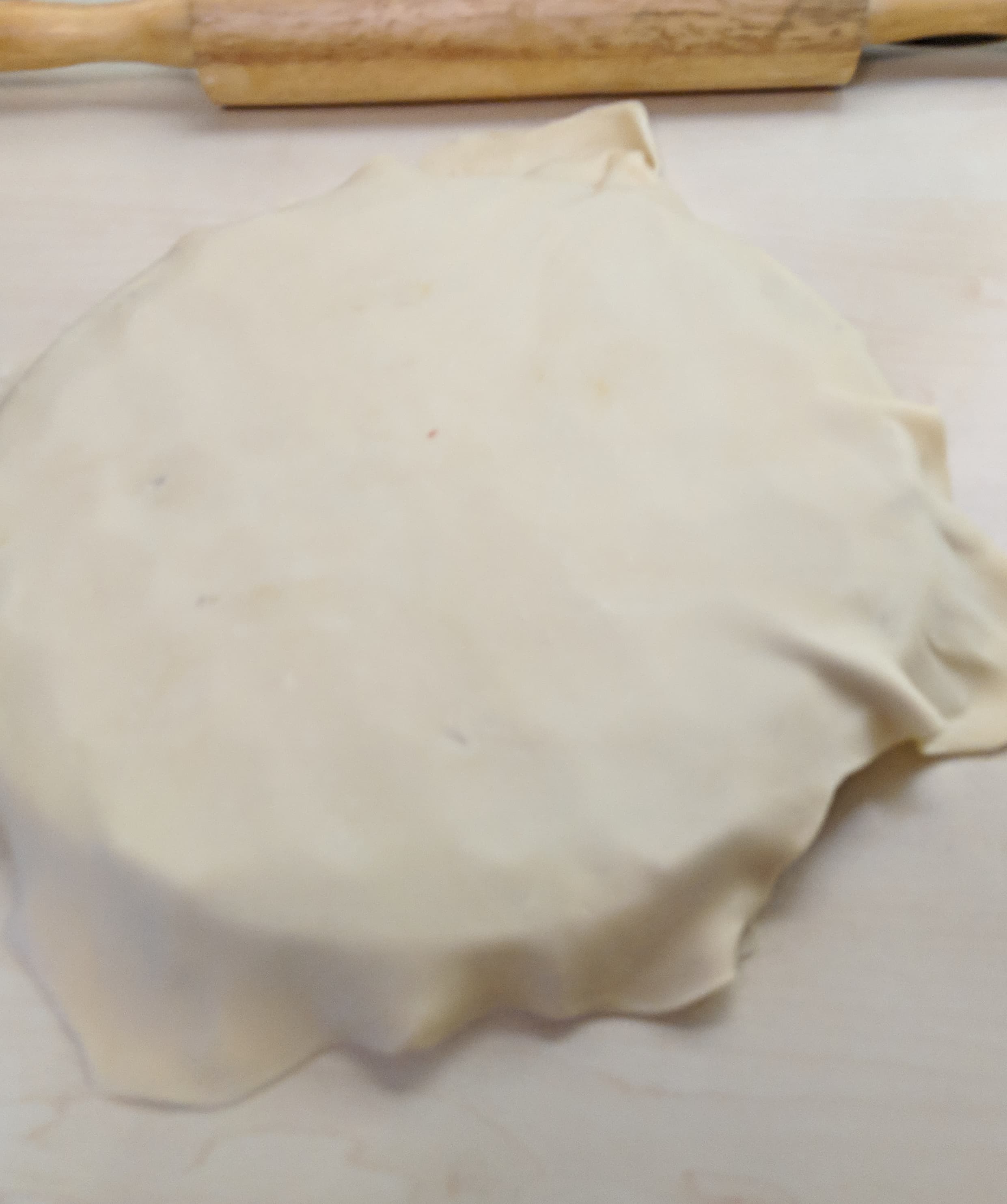 Оно легко раскаталось в тонкий пласт, который мы использовали как основу для пирога с яблоками.