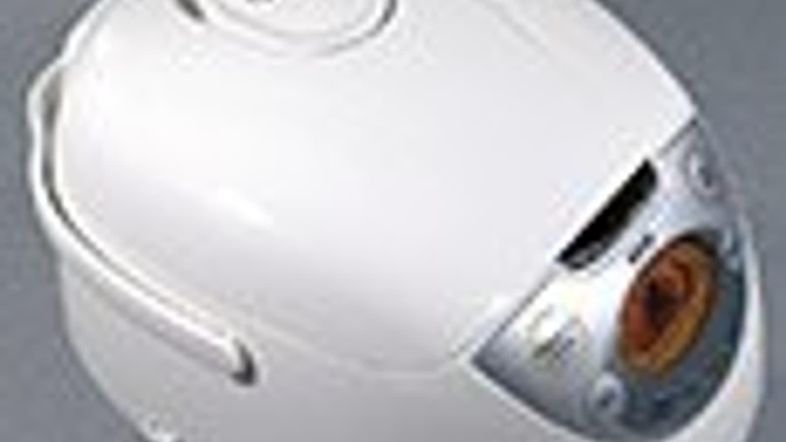 Это недорогая модель мультиварки, практически самурайская. Почти ничего лишнего: режимы «Рис» (с подрежимами «быстро», «медленно», «немного риса», «хрустящая корочка»), «Тушение», «Пар», «Суп» и загадочный «Рисовый отвар». По сути, является слегка усовершенствованной рисоваркой, что и видно по большой круглой кнопке «Рис» на панели, напротив кнопки «Меню». Мультиварка предназначена, в первую очередь, для приготовления круп и каш. Другие блюда в ней, впрочем, тоже можно готовить; некоторые пользователи даже умудряются печь в приборе хлеб.