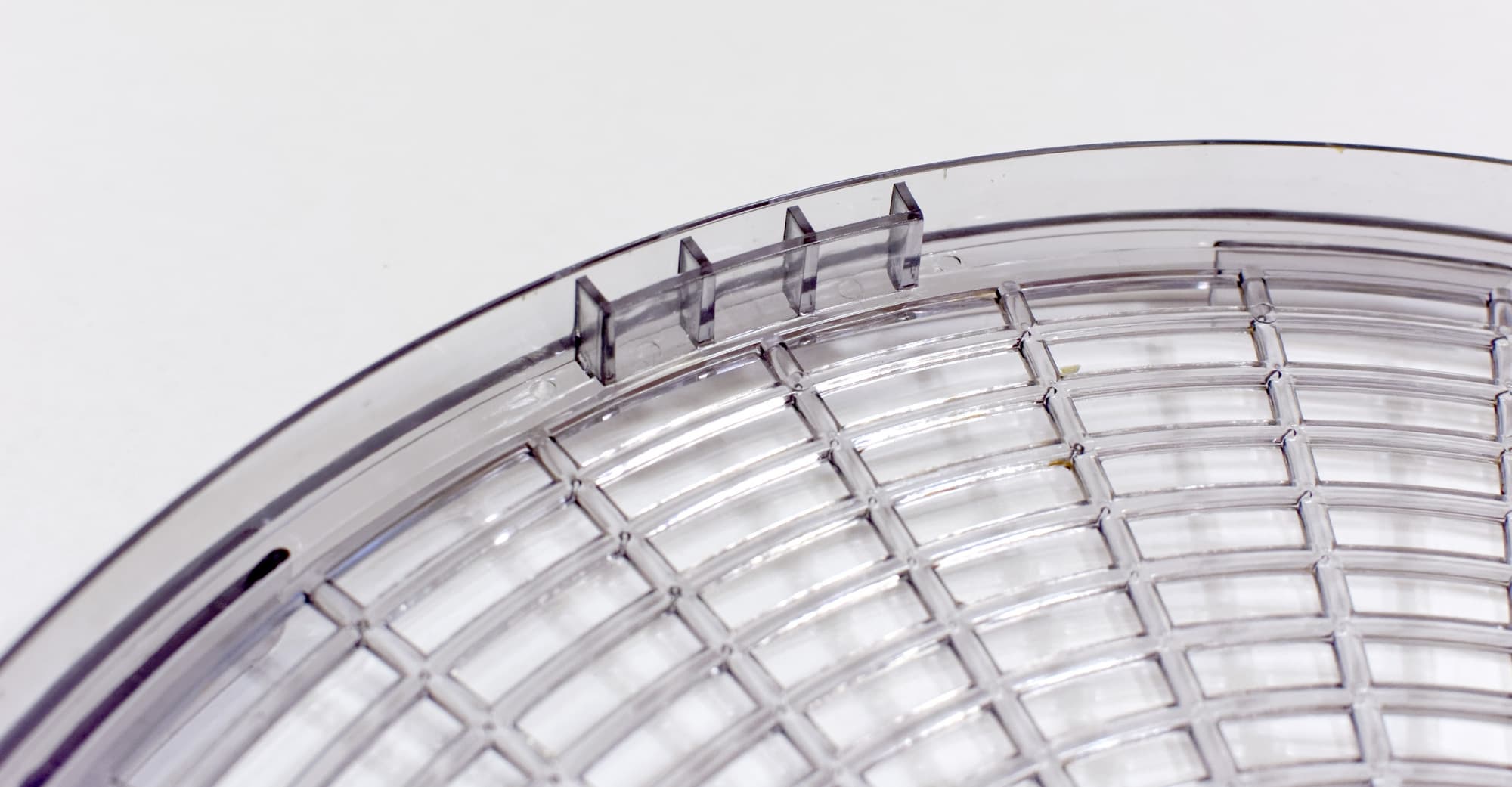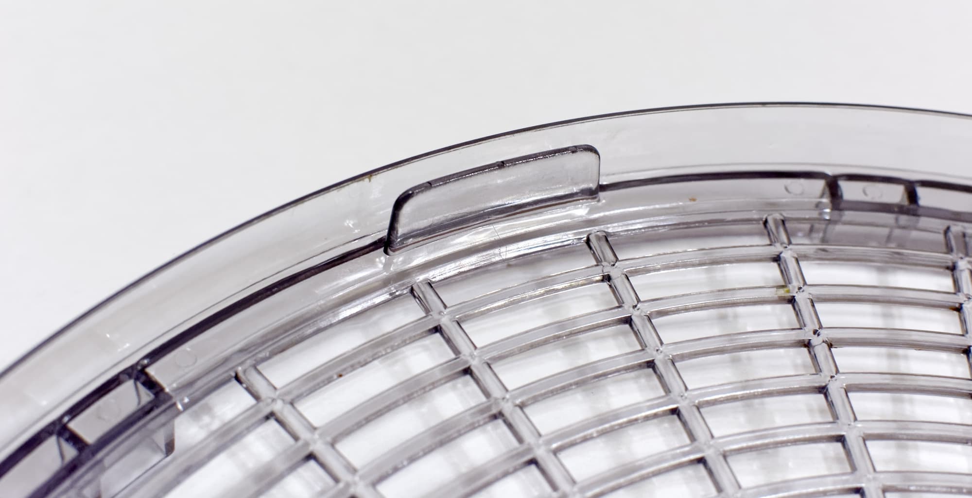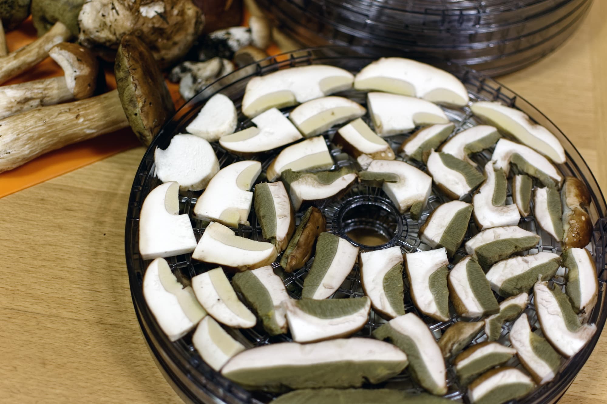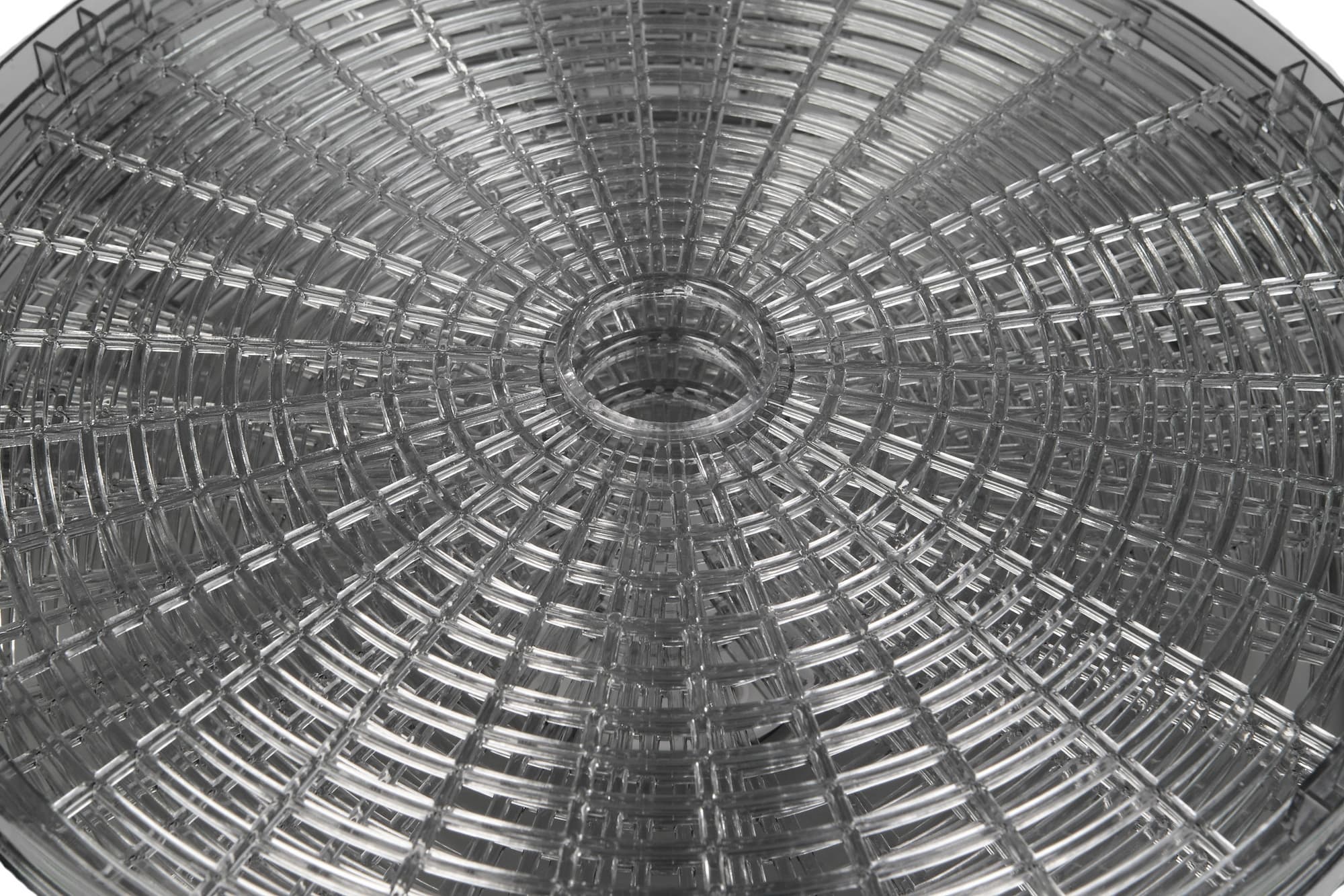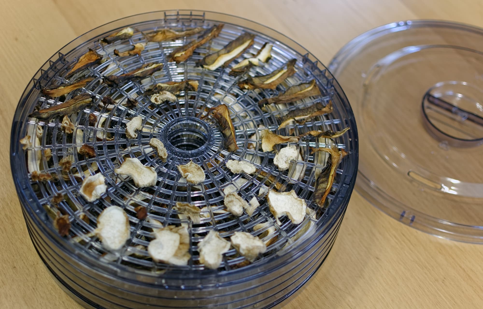 Щели в сетчатом дне поддона имеют изменяющуюся от внутренней к внешней окружности длину и постоянную ширину около 6 мм. Это не такая уж мелкая ячейка, что в определенных случаях может стать проблемой — например, при сушке маленьких грибов.