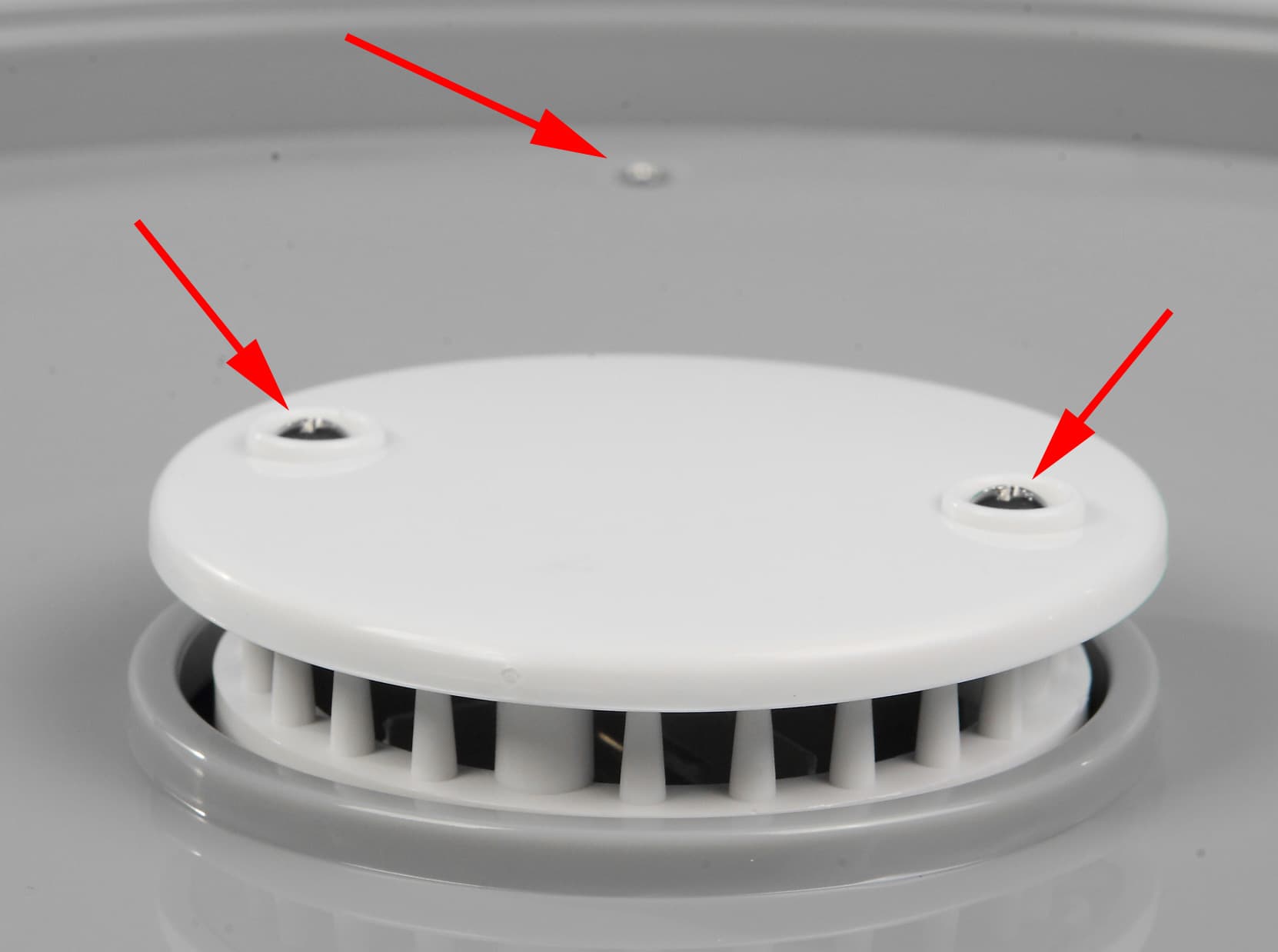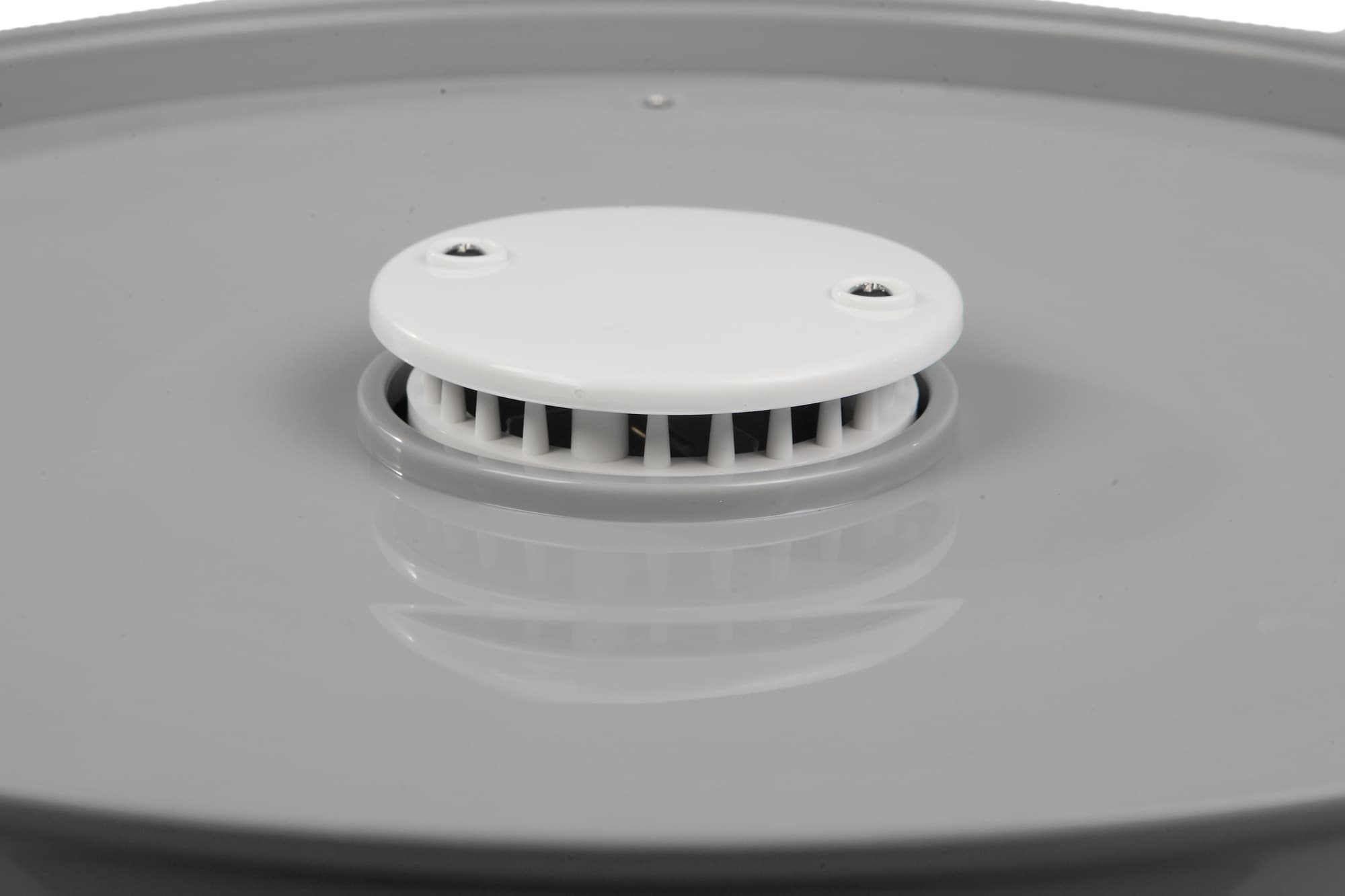Но есть один «хинт» из нашего личного опыта: когда мы сушили рыбу, капли маринада очень сильно запачкали основание, да еще и присохли. Оттирать такое «влажной тряпкой» — это, простите, проще (и быстрее) новую сушилку купить. Поэтому мы просто взяли и разобрали ее. Сделать это легко: сначала отвинтить крестовой отверткой два самореза на «грибке», снять его, а потом отвинтить еще 4 самореза по краям крышки и снять ее, подковырнув и потянув вверх.