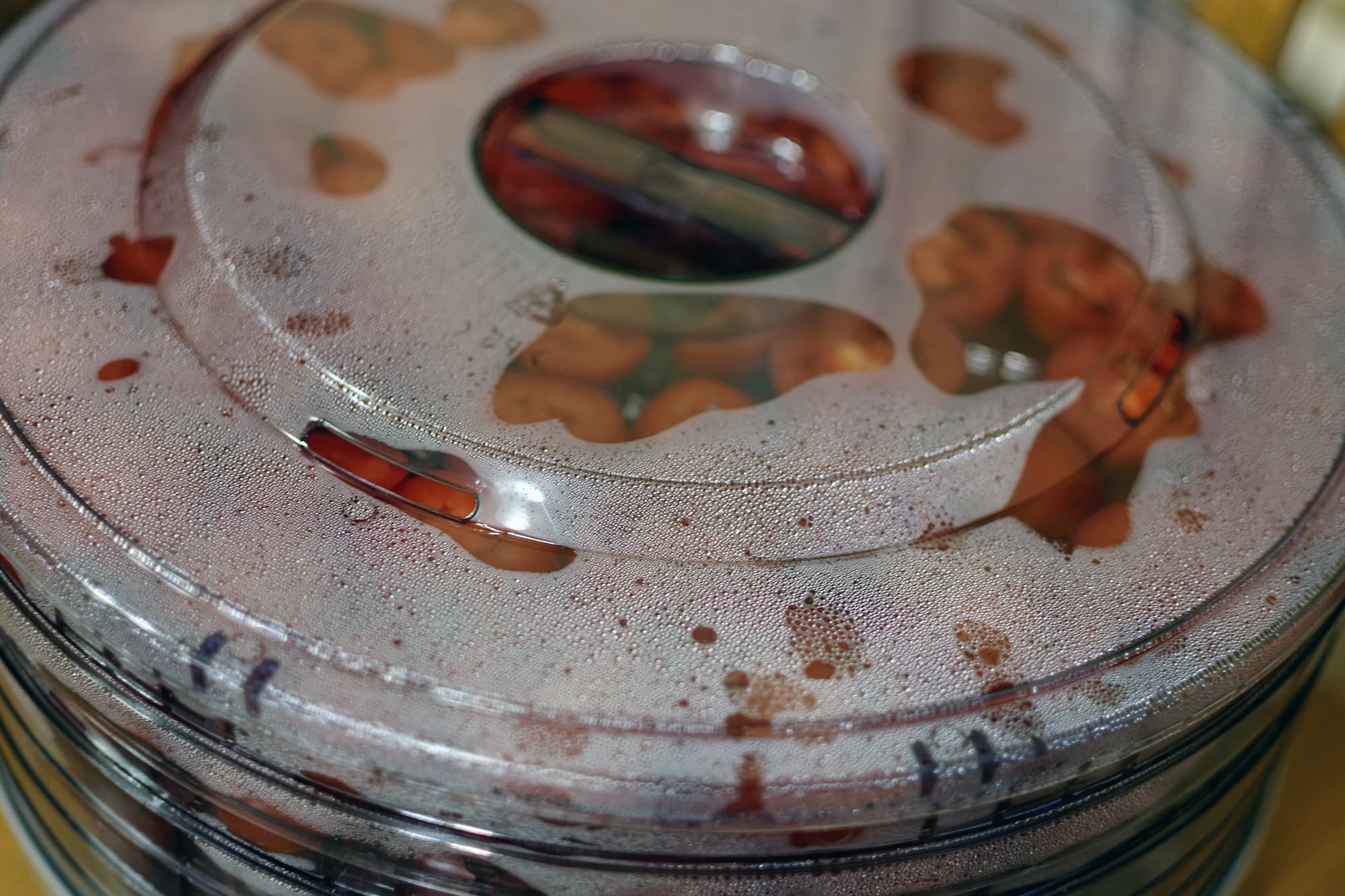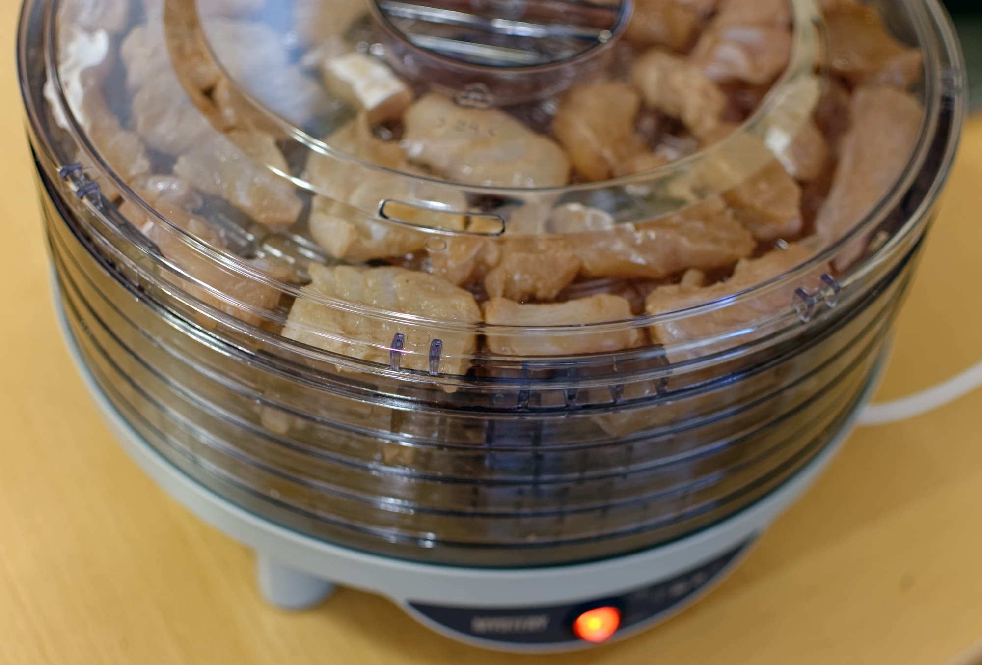 Это один из наших любимых тестов для дегидраторов, поскольку он позволяет сразу выявить много особенностей — и скорость сушки, и ее равномерность «по вертикали» и «по горизонтали» (в данном случае — от центра к краям). В общем — удобный тест. В этот раз мы решили его усложнить, попутно получив ответы на некоторые дополнительные вопросы, а заодно визуально отследить процесс сушки «в динамике».
