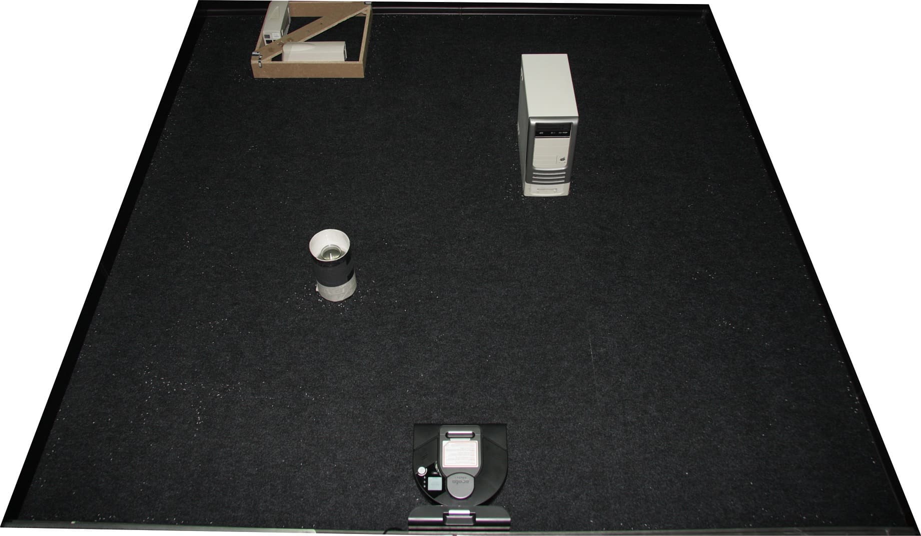 В начале уборки робот обходит по периметру доступную для уборки площадь, а затем, двигаясь змейкой, обходит внутреннюю часть территории. Робот определенно строит и использует карту, это видно по маршруту движения — он заполняет змейкой всю доступную площадь, при этом по возможности убирает поверхность только один раз и целенаправленно переходит к тому месту, которое он еще не убирал. Без карты такое поведение было бы невозможно осуществить. Видимо иногда, как на приведенном ролике, на первом этапе обхода робот делит территорию на относительно большие участки, которые убирает последовательно. Видно, что по возможности робот движется правым боком к препятствию, дополнительно контролируя расстояние до него с помощью ИК-датчика на бампере. Этот датчик, а также механический бампер помогают роботу корректно работать при наличии низких препятствий (как балка в нижней части кадра или плинтуса вдоль стен), которые не обнаруживаются лидаром. Несмотря на такое обилие датчиков робот не всегда корректно отслеживает свои габариты относительно непреодолимых препятствий. Так на ролике выше видно, что базы робот все-таки касается, а повороты в углах даются ему с большим трудом, и тут уж кто кого пересилит, или робот раздвинет то, что ему мешается (тяжелую балку или раму из ДСП, формирующую загон), или задерет заднюю часть, но все-таки повернет. Кстати, в узкие места, которые шире корпуса робота на 50 мм и которые он может определить с помощью лидара, пылесос даже и не пытается заезжать. В итоге нам пришлось немного отступить от правил тестирования и увеличить ширину загона до 40 см, а сначала мы выставили 38 см = 33 см (ширина робота) + 5 см (зазор по методике).