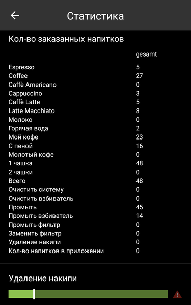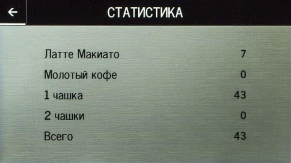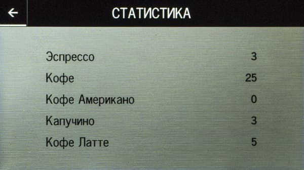 Наконец, есть «Статистика» — подробная, по всем вариантам напитков; для просмотра полного списка пользуйтесь прокруткой.