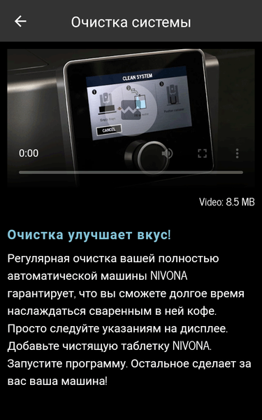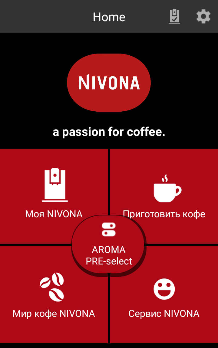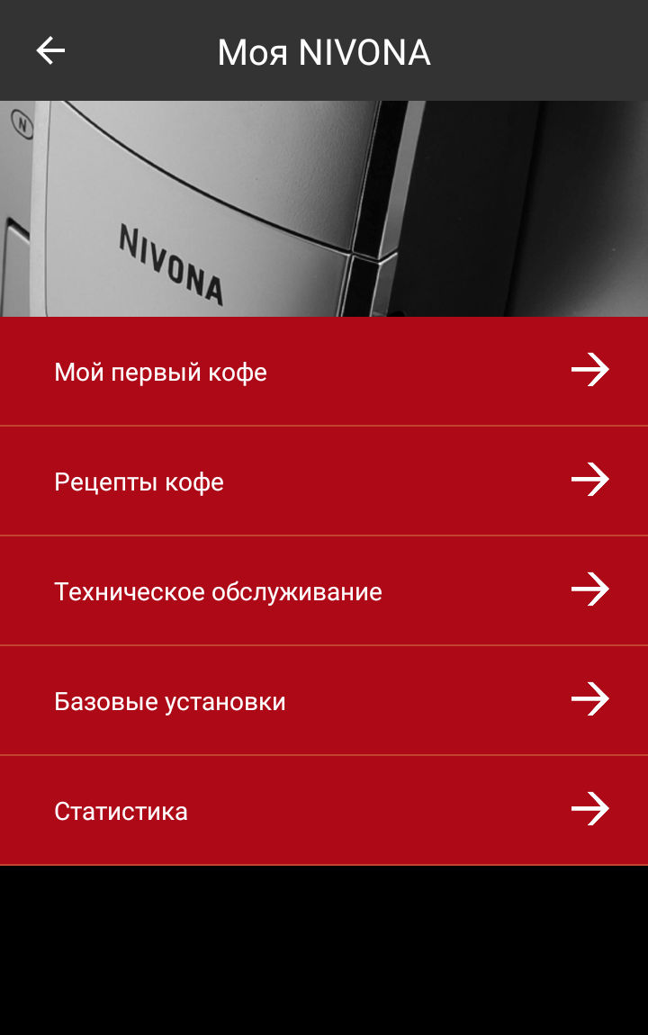Сначала скачиваем приложение Nivona App, доступное для iOS и Android, мы опробовали на примере Android-смартфона. Русский язык в соответствии с системными настройками устанавливается автоматически, поменять можно, нажав символ шестеренки в правом верхнем углу.