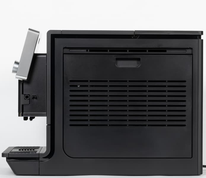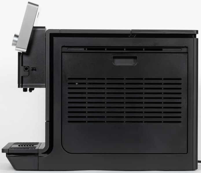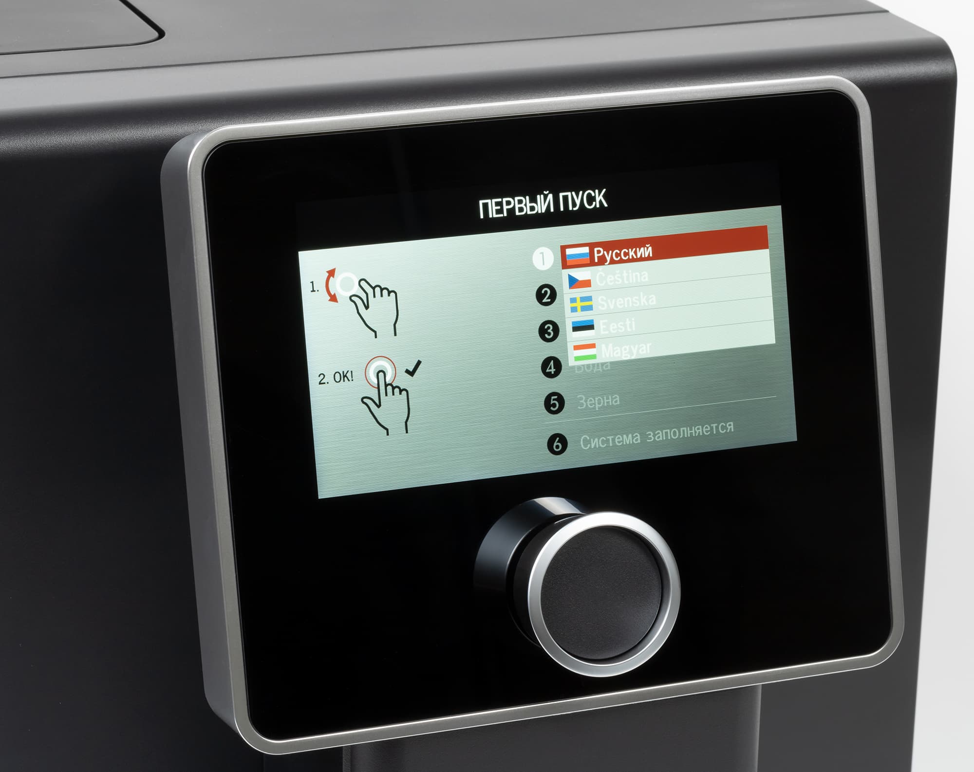 Большой ЖК-экран с качественным цветным изображением, вполне понятное меню и выбор способов управления (прикосновением к экрану или с помощью поворотно-нажимного переключателя) делают «общение» с кофемашиной очень удобным.