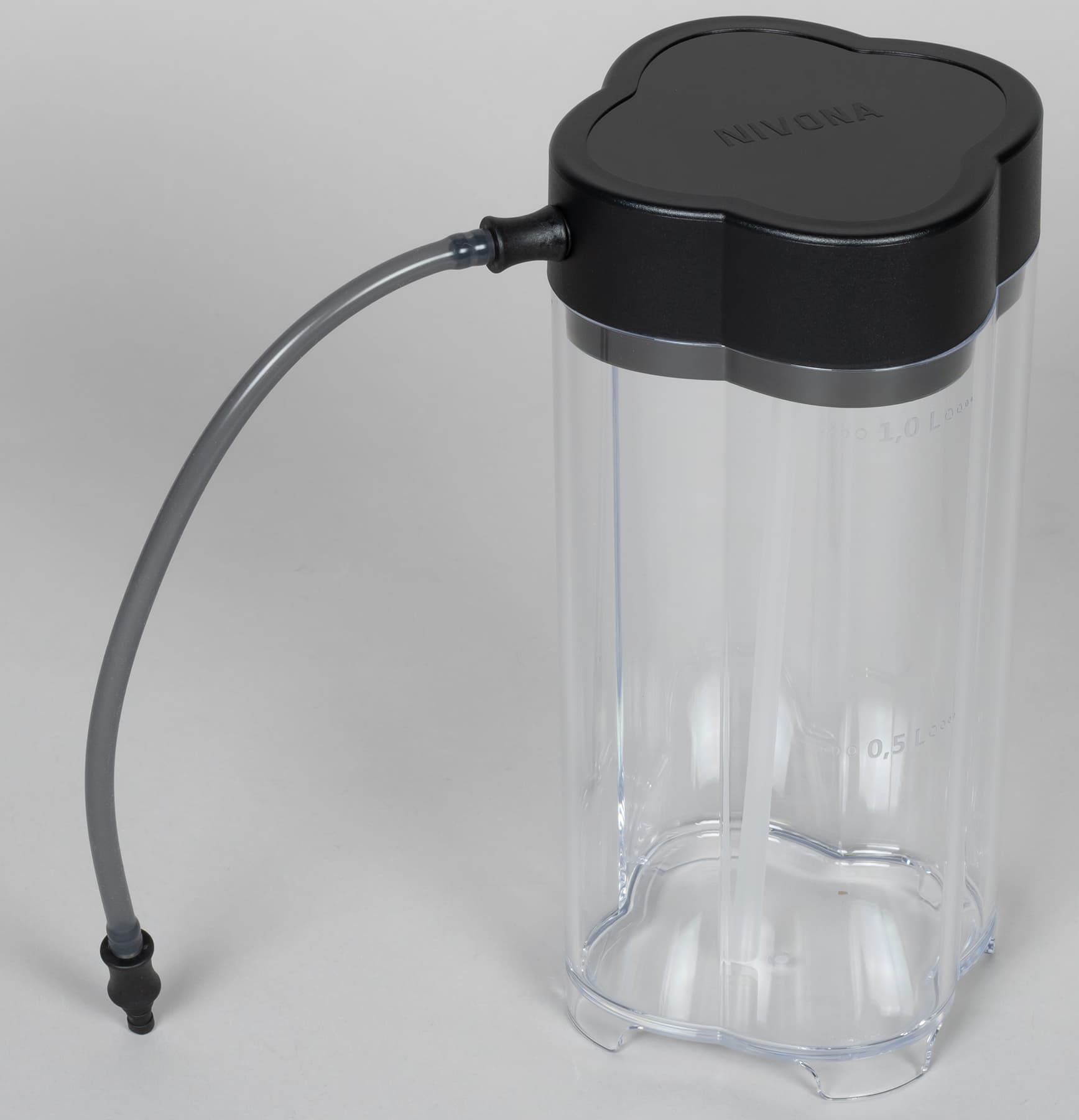 - молочный контейнер емкостью 1 литр, соединительный шланг (нам достались два разной длины: 22 и 31 см),