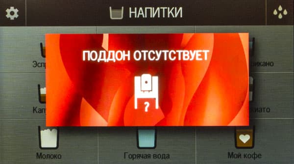 Сообщение об отсутствии воды и требование долить ее возникает, когда в контейнере остается около 170-180 мл, но не во время приготовления напитка — оно завершится, даже если воды в процессе остается немного меньше, лишь потом появится сообщение.