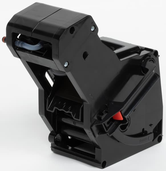 Две пары выпускных отверстий (для кофе и молока раздельные) позволят наполнять две чашки одновременно, в том числе и напитками с молоком. Есть и пятое сопло — для горячей воды, а справа на боковой поверхности находится присоединительное отверстие для трубки подачи молока.