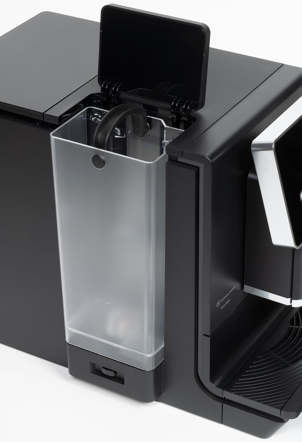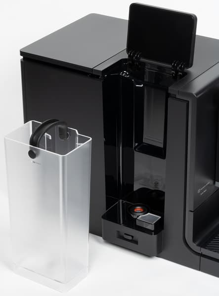 Для напитков с молоком придется лишь вставить трубку в крышку молочного контейнера, все остальное машина сделает сама. В настройках отдельно задается объем (в миллилитрах) молочной пены и кофе, а также молока для латте макиато. Для «чисто молока» можно менять объемы пены и собственно молока, температуру и количество чашек. Понятно, что объем пены — понятие относительное, многое будет зависеть от свойств используемого молока.