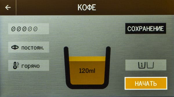 По окончании процедуры значения сохраняются и будут использованы для быстрого приготовления коротким нажатием на основной странице.