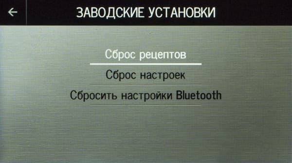С подразделом выбора языка все понятно без комментариев, относительно возврата к заводским установкам надо уточнить, что есть три варианта: сброс только рецептов (он затронет и «Мой кофе»), всех настроек (кроме языка), а также сброс Bluetooth, установке связи по этому интерфейсу посвящен последний подраздел системных настроек, но его мы рассмотрим чуть позже.