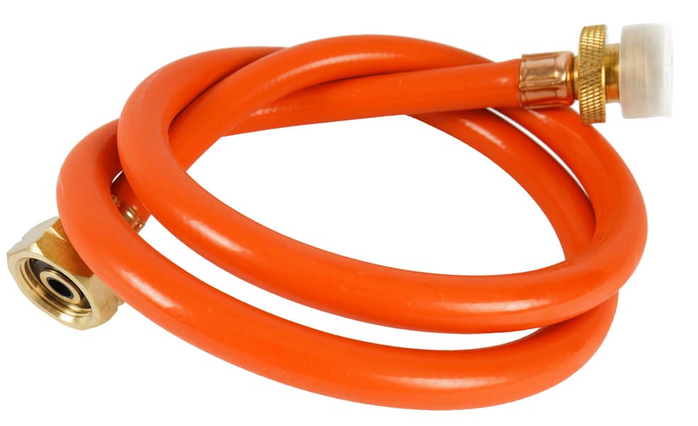 Также нам предоставили на тесты шланг высокого давления для подключения стандартного баллона для газовых плит, хорошо знакомого практически всем российским дачникам. Шланг содержит в себе клапан, так что если его открутить от гнезда на гриле, ничего страшного не произойдет, даже если кран на баллоне открыт. А редуктор, кстати не нужен: он интегрирован в сам гриль.