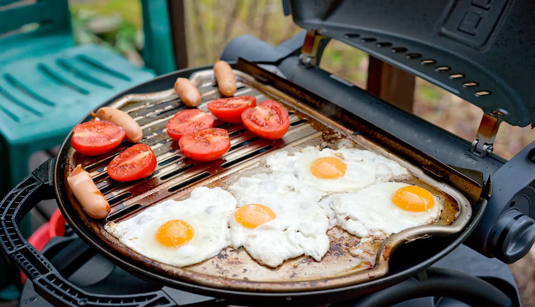 Удобно. Ничего не пригорело (особенно волновались за яйца), следы жареного как остались на решетке, так потом легко и отмылись.