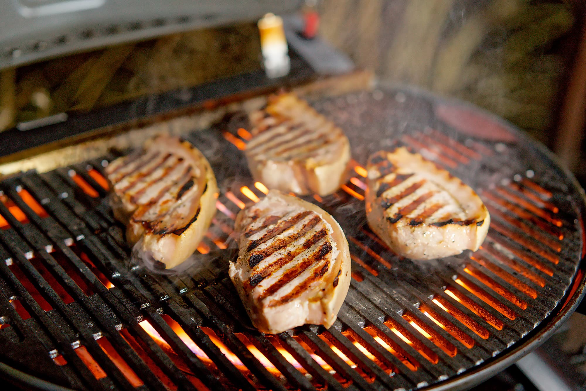 Достаточно неочевидное про камень для пиццы: он уменьшает температуру воздуха под крышкой, причем довольно существенно: максимальная температура при использовании чугунной решетки, которой нам удалось достичь, равнялась 320 °C, в то время как с камнем для пиццы она застыла на 250 °C, а «раскочегаривался» гриль до них сильно дольше. Подумав, мы пришли к выводу, что все логично: в камне нет отверстий, поэтому горячий воздух от горелок идет под крышку «кружным путем» и успевает за счет этого подостыть, отдавая тепло камню и боковым стенкам.