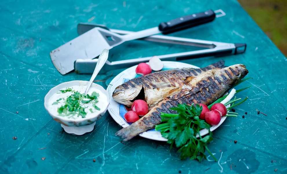 Через три с половиной минуты рыб перевернули на другую сторону, еще через четыре — сняли с гриля.