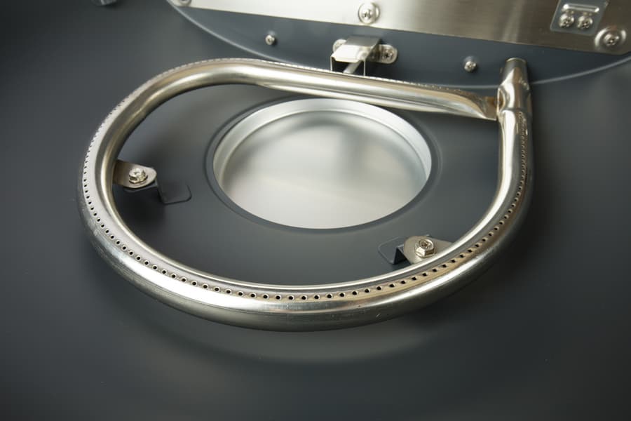 Сняв чугунную решетку мы увидим газовую горелку вполне традиционной формы для тех грилей, у которых она одна.
