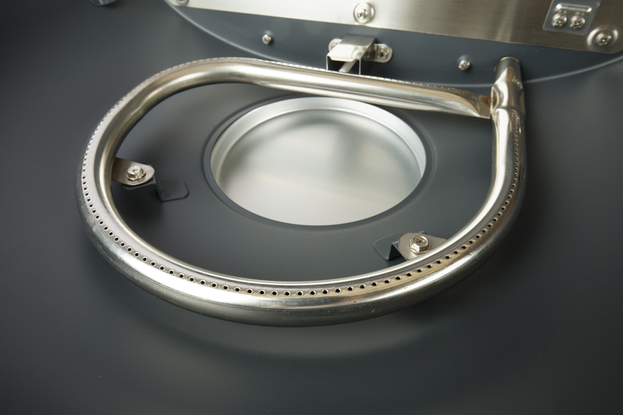 На этом же фото виден алюминиевый поддон, прикрывающий примерно аналогичного диаметра отверстие в нижней части гриля — в это отверстие будут стекать в процессе готовки излишки жира.