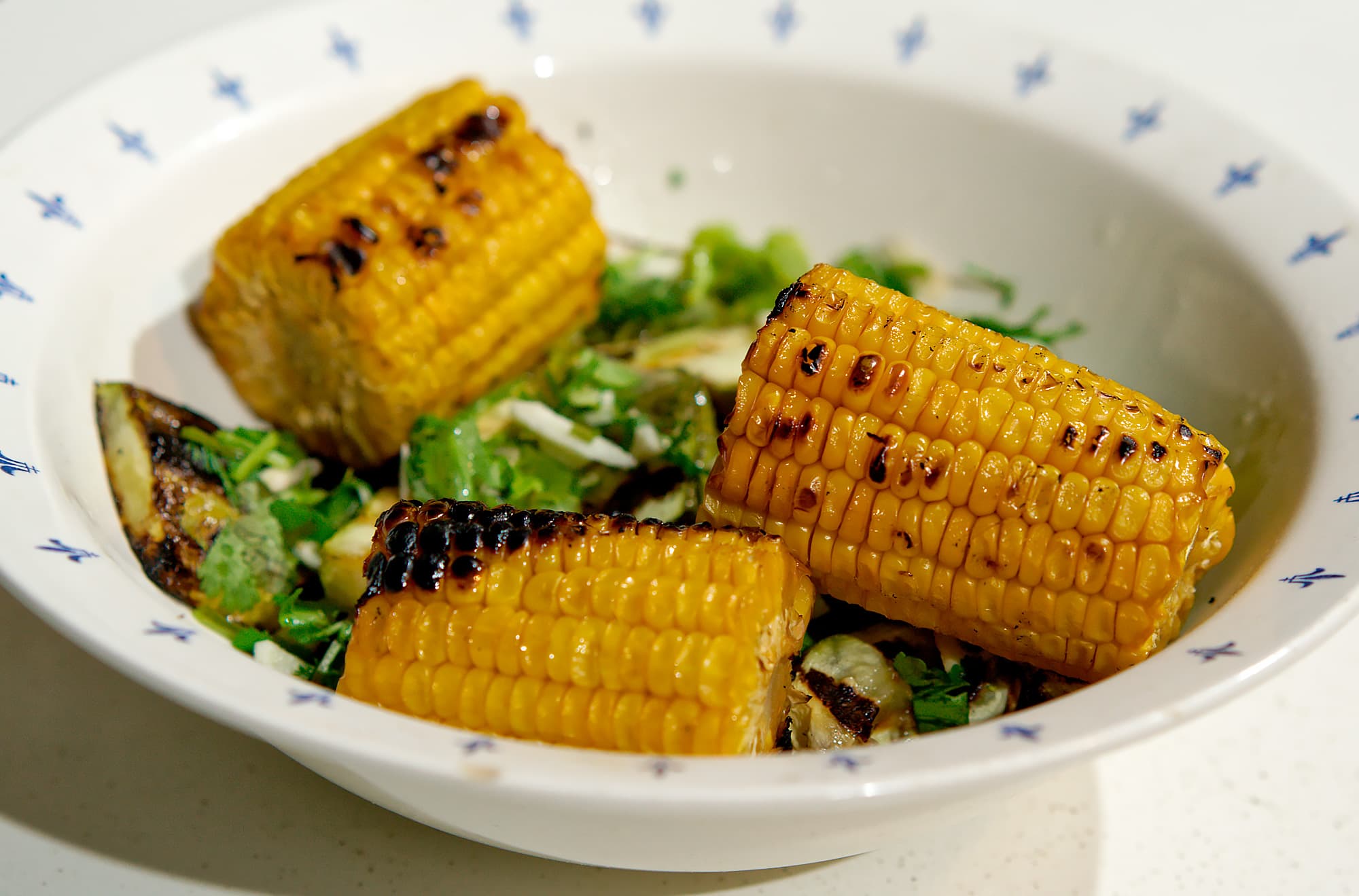 Пока дожаривалась кукуруза, уже готовые кабачки снимали по несколько кусочков, поливая соусом из воды, резаного чеснока и кинзы.