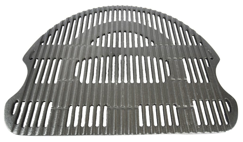 Конструкция чугунной решетки не так проста, как можно подумать: обратите внимание на места, где нет прорезей. Часть из них повторяет силуэт находящейся под решеткой горелки, предохраняя ее таким образом от прямого попадания стекающего жира на сопла.