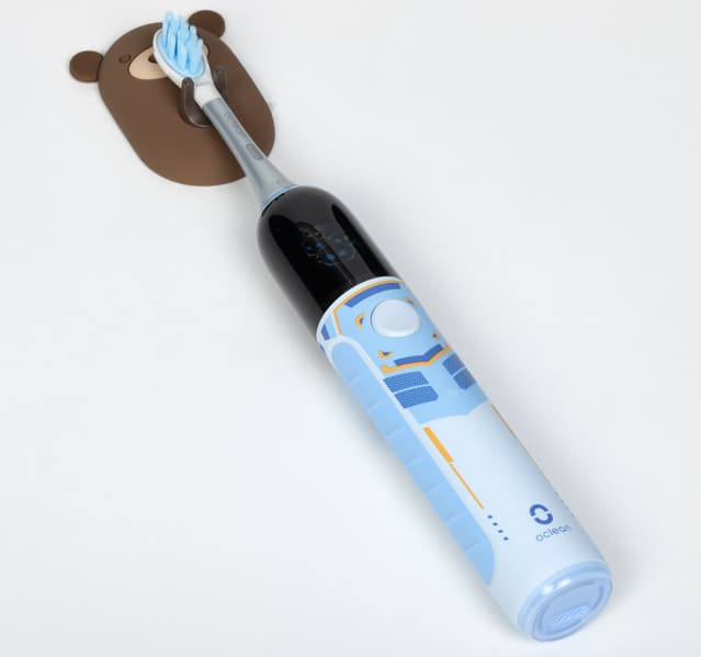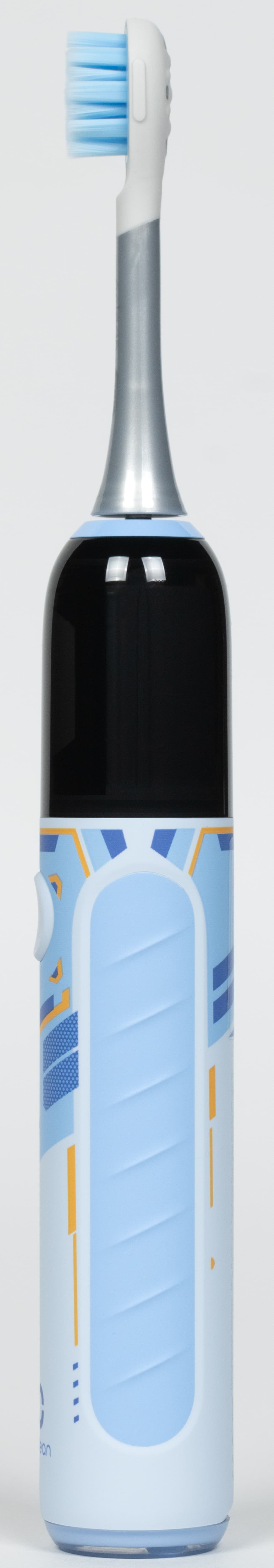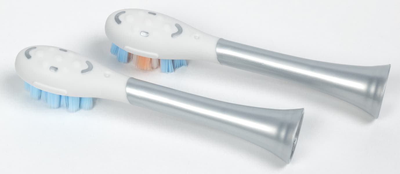 Дизайн щетки создан специально для детей: насадки уменьшенного размера и небольшой вес. Насадки вибрируют, и это ощущается не только зубами и деснами, но и рукой, держащей устройство.