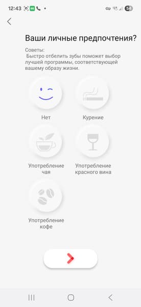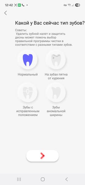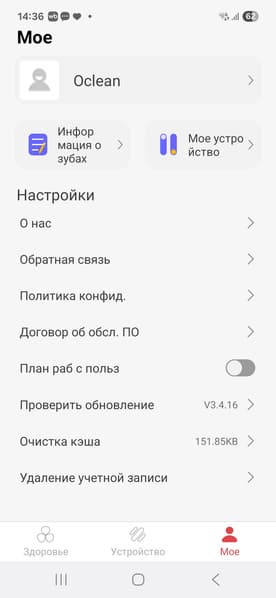В разделе «Мое» есть возможность предоставить информацию о своих зубах и настроить функции устройства.