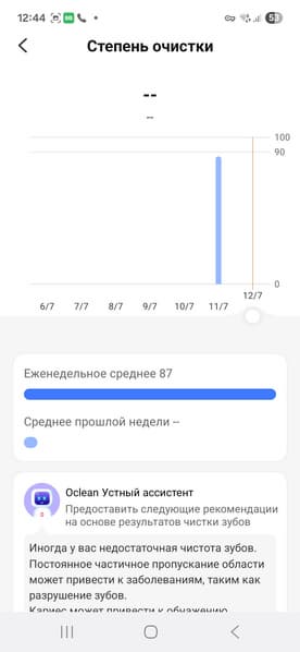 «Здоровый отчет» показывает степень очистки зубов и продолжительность чистки в еженедельном разрезе, а умный ассистент Oclean дает рекомендации по чистке.