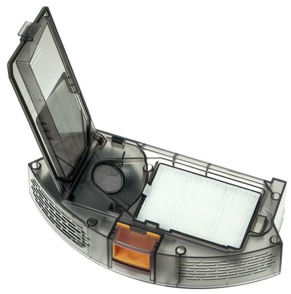 Всасывающий двигатель размещен внутри блока для сухой уборки. Между ним и контейнером для мусора располагается фильтр тонкой очистки, представляющий собой прямоугольный HEPA-элемент.
