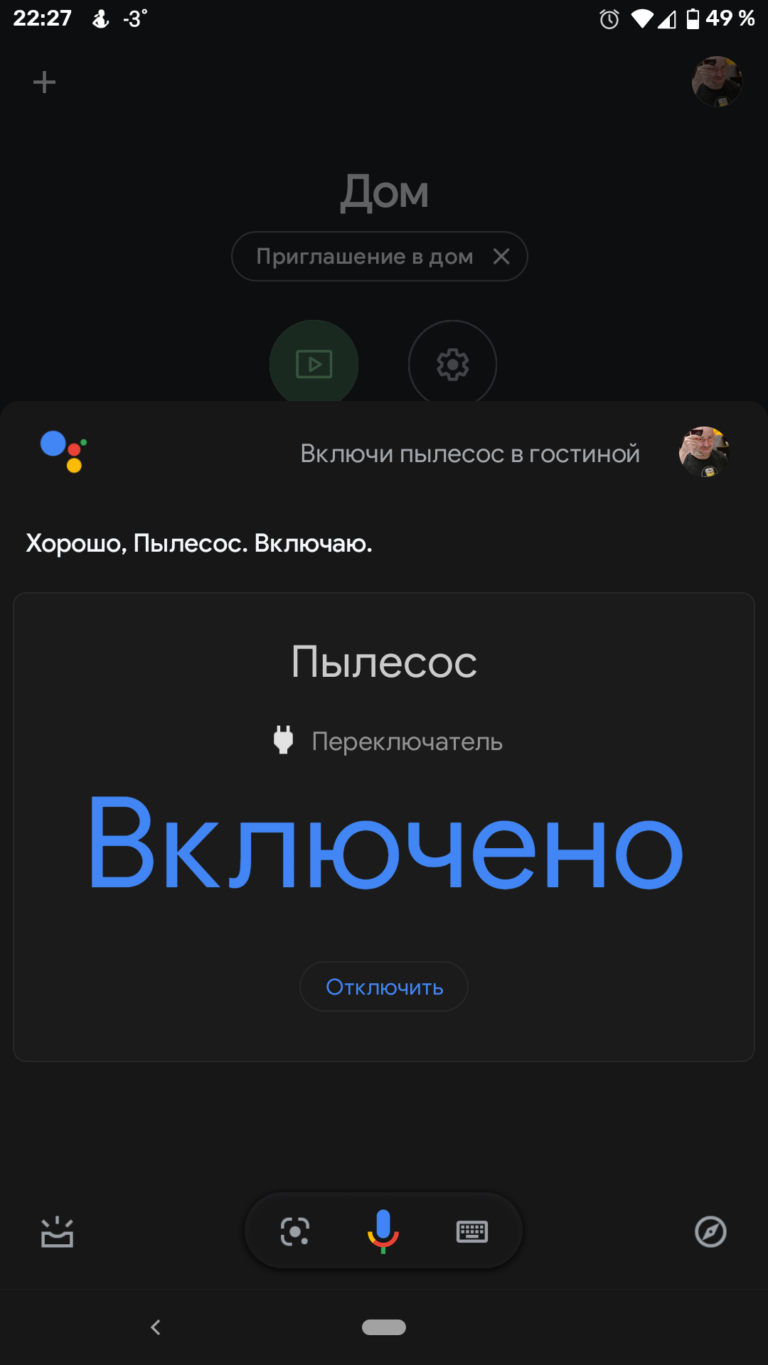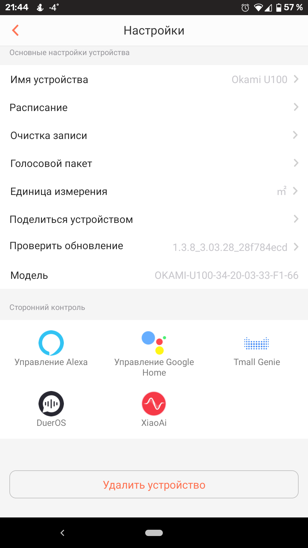 После регистрации доступно голосовое управление устройством при помощи Google Assistant. Однако расширения функциональности от интеграции с сервисом ждать не стоит: как и большинство протестированных нами роботов, Okami U100 определяется как «переключатель», что позволяет только включить или выключить прибор, не более.